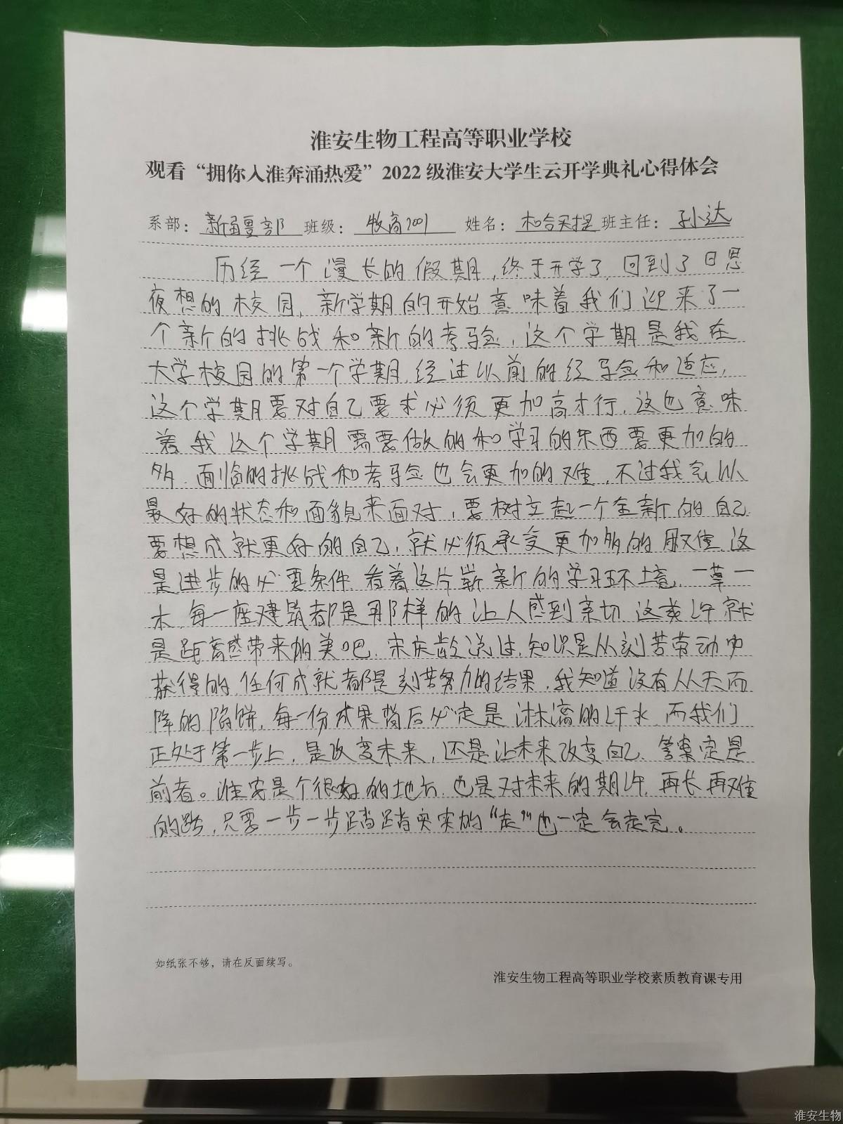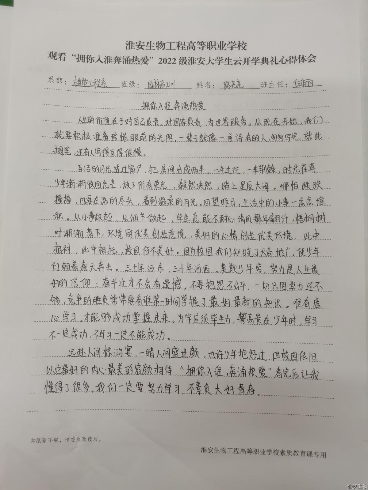 “云端”开学典礼,开启新的征程。“云中相见”并未影响同学们的那份激动与欣喜,同学们认真收看2022级淮安大学生云开学典礼,撰写心得体会吐露心声,通过拍摄照片、录制短视频、发布朋友圈等多形式积极宣传本次活动,为2022级新生了解淮安、走进淮安、圆梦淮安加油。