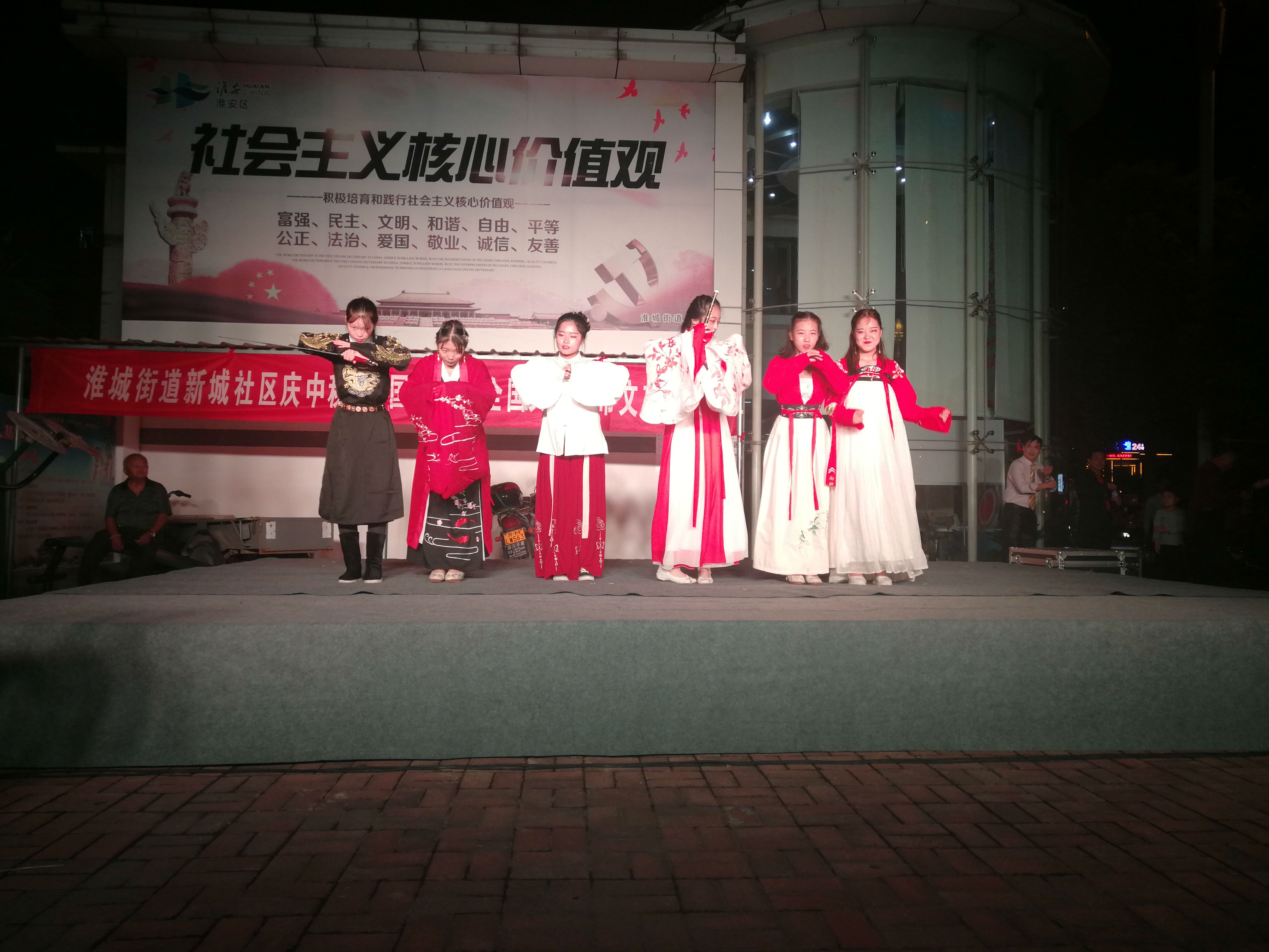 为丰富社区文化生活,提高市民对创建文明城市的知晓率和参与率,积极营造文明城市创建的良好氛围,9月21日,我校派出了以汉服社团为代表的参加了淮城镇新城社区举办的“庆中秋,迎国庆”创建文明城市文艺演出。