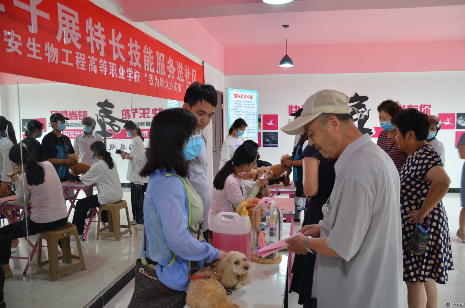 动物工程系、植物工程系及机电工程系的师生志愿者30多人,分宠物美容、艺术插花和“手机课堂”三个展示区,结合专业特点,立足自身特长,提供技能服务。通过摆放宣传展板、发放宣传资料、现场咨询讲解、技能展示传授等多种方式,普及宠物的毛发修剪、美容、家养宠物基础疾病的预防诊治,家庭花艺、各种花卉养护,智能手机应用与防范电信诈骗等与居民生活息息相关的科技知识,并为社区居民现场修剪宠物狗毛发、展示经典花艺造型,介绍常用花材、叶材。面对原本无从入手的居民们,还细心地向大家现场演示几种常用的家庭插花类型,耐心讲解各种类型花艺作品的操作要领。居民们认真听、仔细看、虚心学、耐心做,活动现场洋溢着居民们高涨的学习热情。当捧起自己刚完成的插花作品时,发自内心的成就感油然而生。