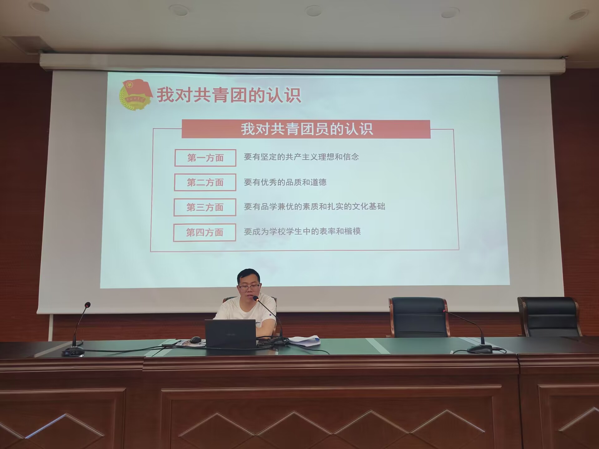 许老师说,作为新时代的共青团员,是一种荣誉,也是种责任。他提出,成为一名合格的共青团员,要有以下五个意识:一、要有知团史,晓团情的意识。在中国共产主义青年团的发展历程中,团员们始终积极投身于革命、建设、改革的各个历史时期,为国家和人民做出了重要贡献。了解团史、认识团情,能够更好地激发团员们的责任感和使命感;二、要树立自立自强的意识。要时刻注意用团员的标准和要求来鞭策自己,不断增强作为一名共青团员的光荣感和使命感。在学习和社会生活各方面起带头作用,努力成为执行党的路线、方针、政策坚定捍卫者。勤奋工作、刻苦学习、遵纪守法,树一代新风;三、要有自律意识和慎独意识。世界上没有完全的自由,我们所谓的真正自由是严于律己,从我做起,并积极学习。我们的自律并不等于墨守成规、自我束缚,我们的自律是要力求上进的自律、是蓬勃向上的自律,它要求勤奋学习、提高科学文化水平、扩大见识面、不畏困难、积极向上;四、要树立社会竞争意识。当今的世界是竞争的世界,我们要充分利用学校给予的机会,把握机会展示自己。锻炼自己各方面的能力,让自己能够在社会竞争中生存,将来做一个有所作为的人;五、要树立创新发展意识。创新是一个常谈常新的话题,它是一个民族进步的灵魂,是一个国家兴旺发达的不竭动力,也是一个政党永葆生机的源泉。我们要利用在校学习的大好时光,树立创新的意识,鼓起勇气,打好创新的知识基础,培养创新的能力,掌握好创新的现代技能,为今后走向社会进行创新实践做好一切准备。