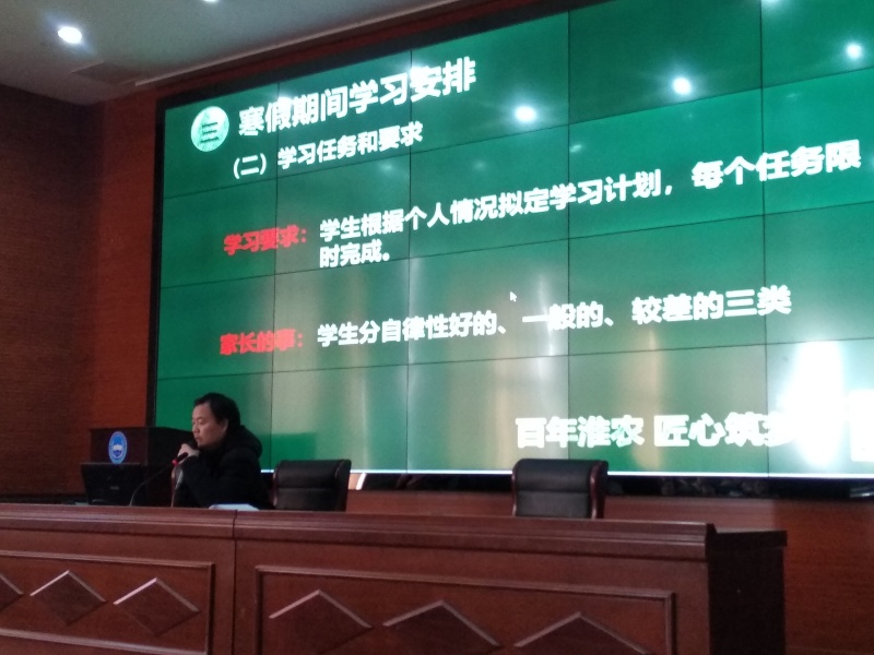 接着,主任陈晓东发表了以“家校携手、共创佳绩”为主题的讲话。陈主任首先以图文并茂的形式向家长介绍了当前(3+4)班升学转段的形势,然后介绍了(3+4)班级管理情况,并对假期中学习安排情况做了说明,最后陈主任就教育孩子方面向家长提出了几点建议。