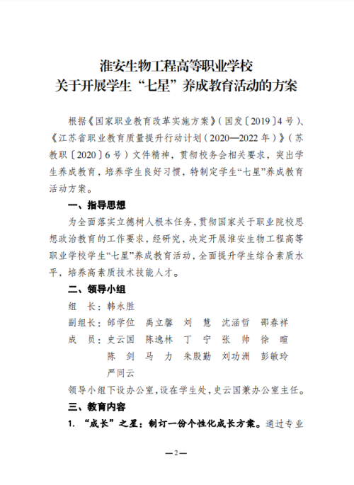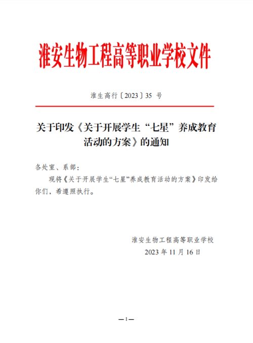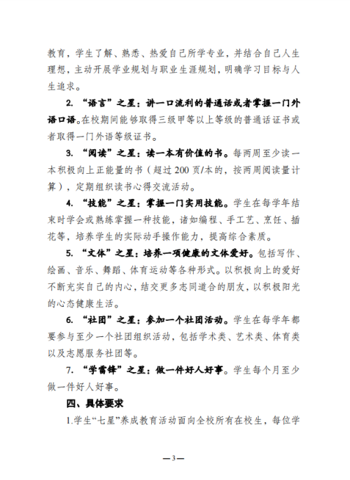 《关于开展学生“七星”养成教育活动的方案》的通知