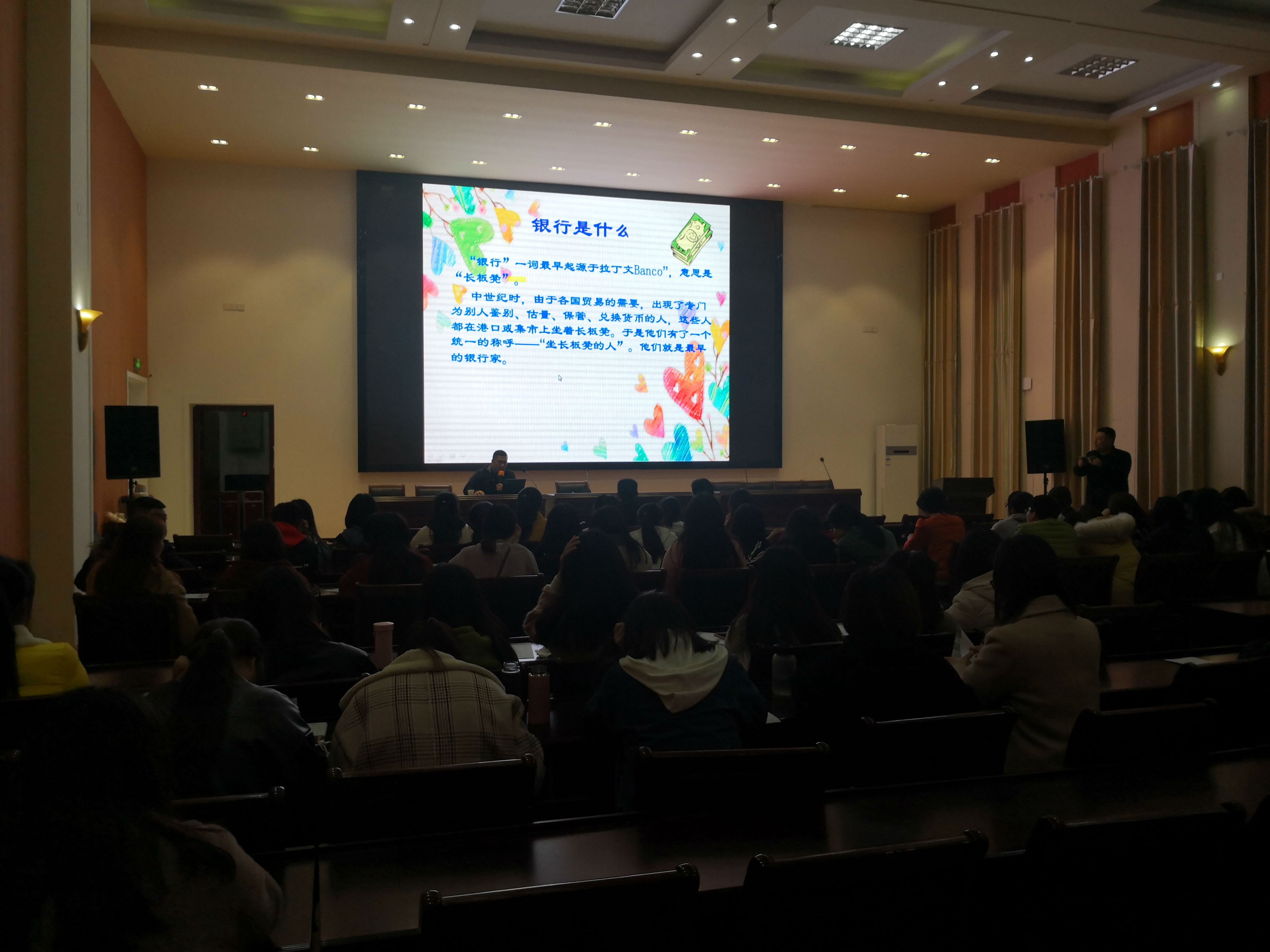 3月18日晚自习,经济贸易系在新农业实训中心124会议室与中国建设银行楚州支行共同举办了“银校共建、金融知识进校园”活动。活动围绕银行的起源、人民币真假识别技能、电子货币普及、信用卡及透支后果等内容深入开展银校合作,建立战略合作伙伴关系,其主要目的是积极推进资源共享,大力宣传征信文化,普遍提高师生诚信意识和自我保护意识,积极创建诚信平安校园,携手实现银校共同发展。