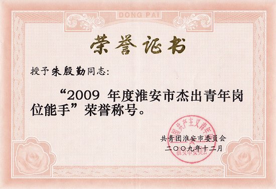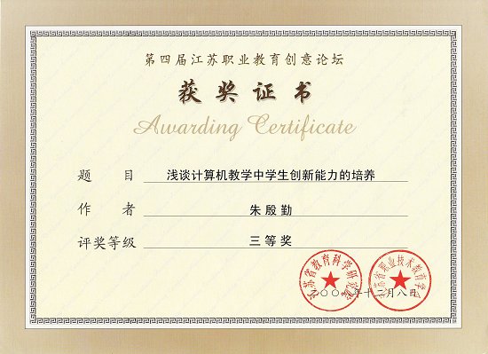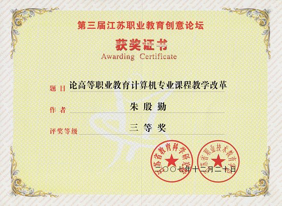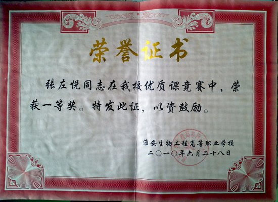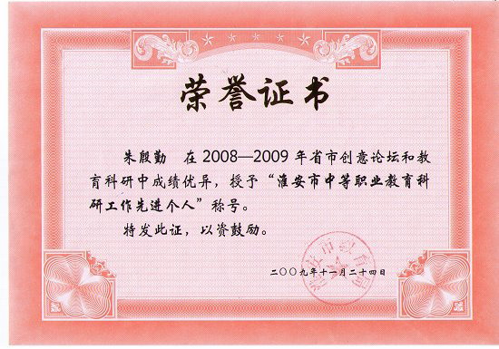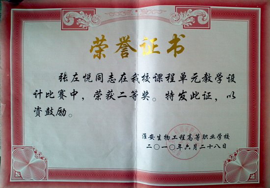曾获“淮安市青年岗位能手”、“淮阴市大中专院校思想政治工作先进个人” 等荣誉称号,多次被学校评为“优秀教师”、“优秀共产党员”和“先进工作者”。