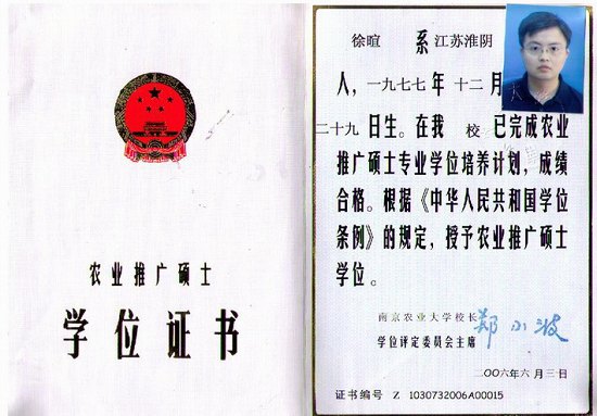 徐暄,男,1977年12月出生,江苏淮阴人,本科学历,硕士学位。1998年7月毕业,并获学士学位,2003年2月考入南京农业大学攻读农业推广在职硕士,2006年7月论文通过答辩获硕士学位。