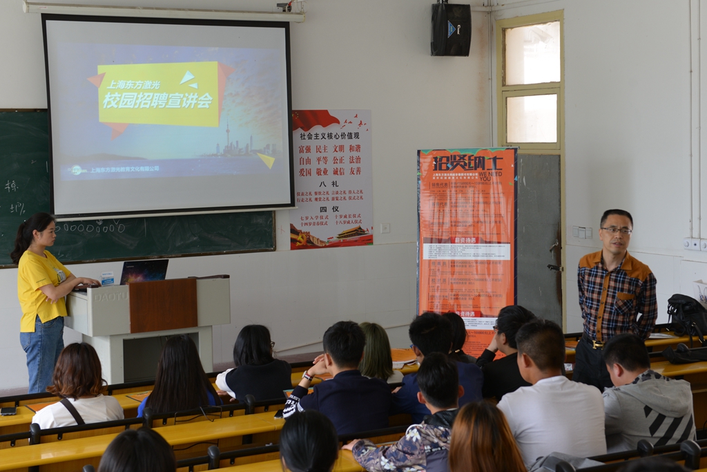 上海东方激光教育文化有限公司人力资源部负责人陆瑞良给大家介绍了企业的发展概况和规模,并结合自身在公司的成长轨迹分享了上海东方激光教育的企业文化、理念和精神。随后,对上海东方激光教育的校园招聘流程、人才引进办法、岗位设置、薪资待遇、晋升空间、职业发展、企业培养体系以及员工福利,五险一金等方面作了详细介绍。宣讲会结束后,上海东方激光教育面试讲师针对学生提出的问题进行了现场解答。