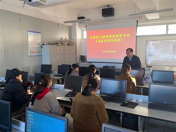 2023年11月6日下午,计算机工程系党支部在实训中心6楼603机房召开主题教育学习会,支部全体党员正常参会。首先,集中学习研讨了《习近平著作选读》相关内容;然后,集中研讨主题教育课题(建设新型活页式数字化云教材的实践研究);最后,集中学习全市教育高质量发展大会的会议精神。