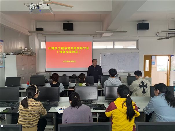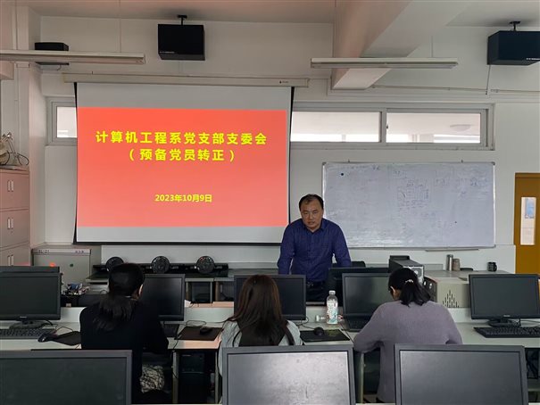 10月9日下午,计算机工程系党支部在计算机实训中心6楼机房分别召开预备党员转正审议的支委会和支部党员大会,两场会议都由支部书记李峰同志主持,支部支委和全体党员正常参会。