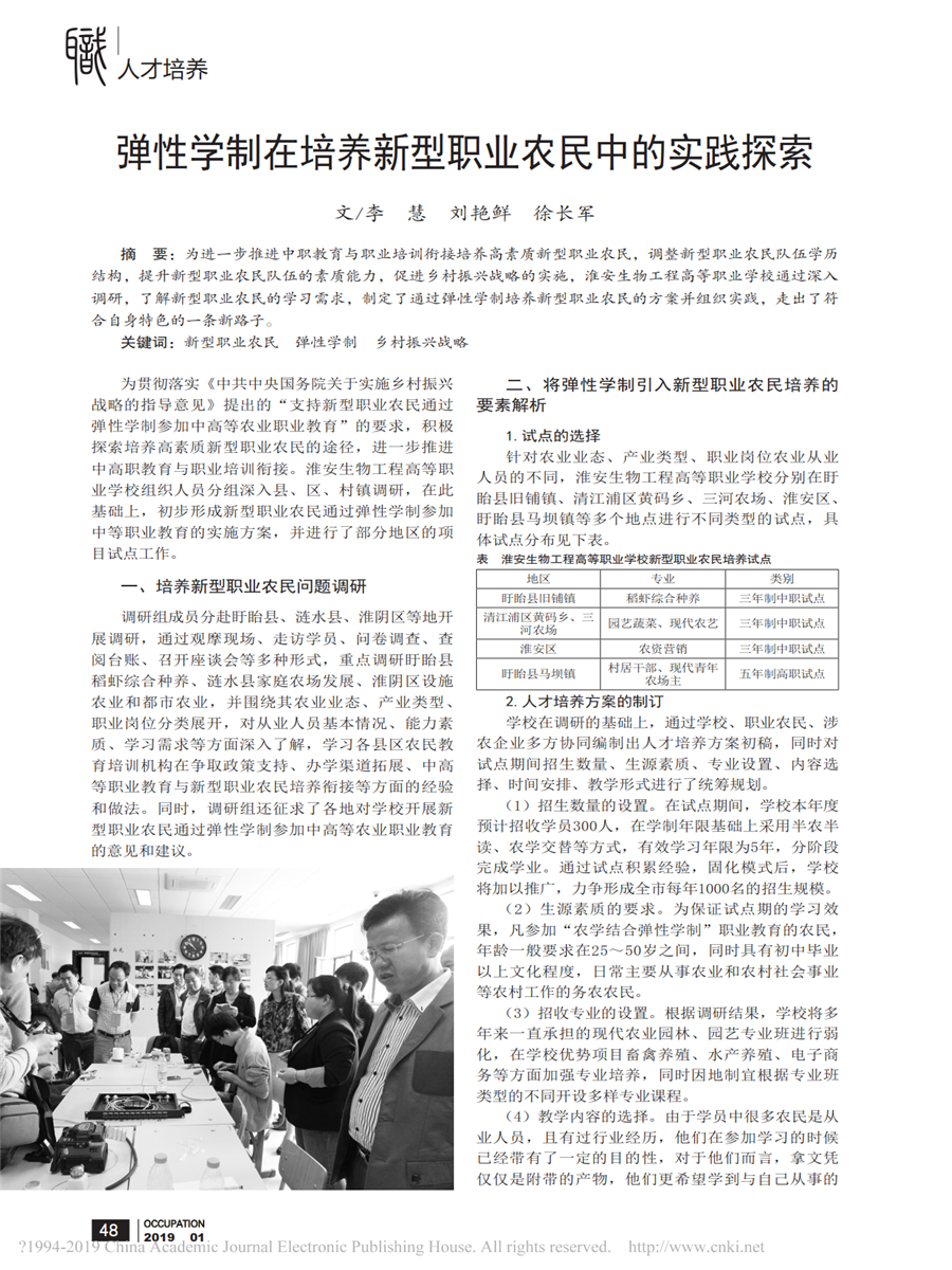 工作室领衔人李慧论著《弹性学制在培养新型职业农民中的实践探索》