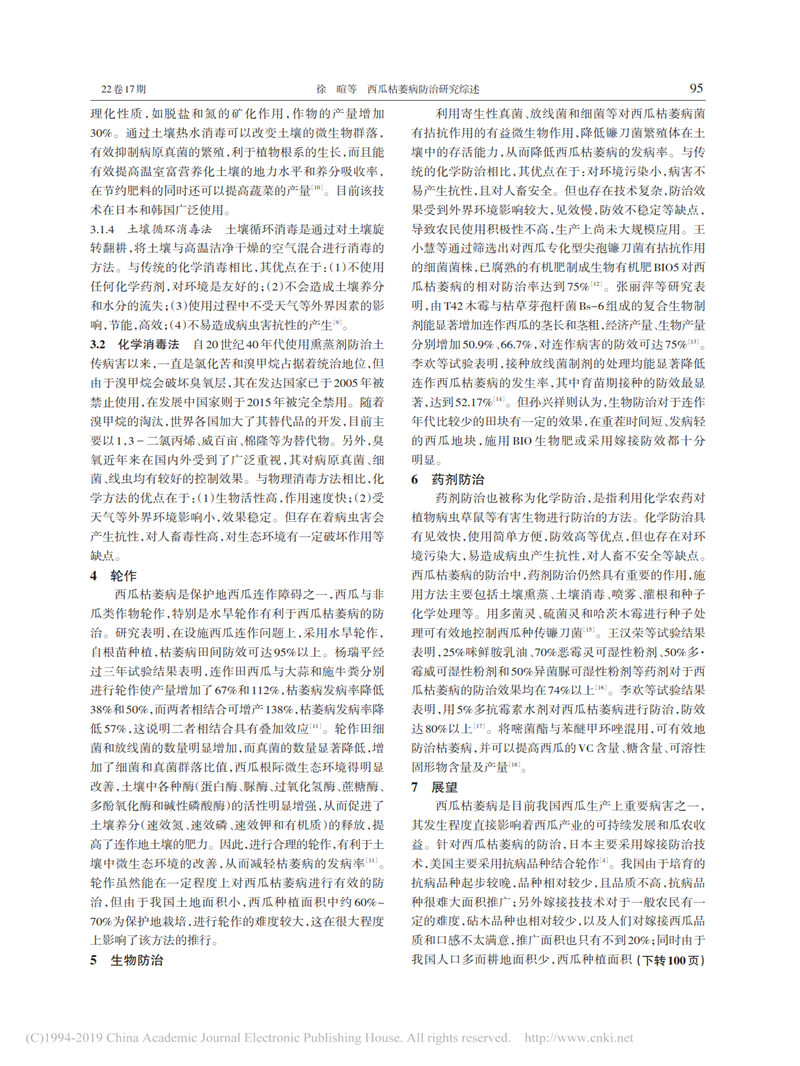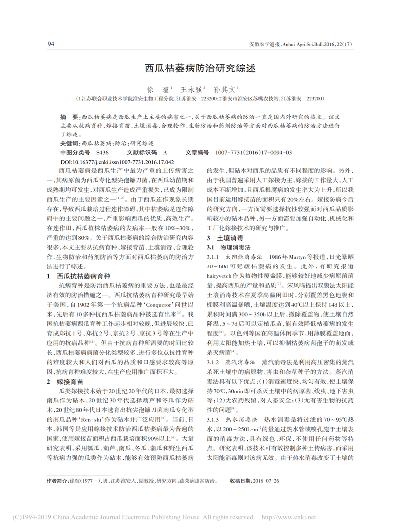 工作室成员徐暄论文《西瓜枯萎病防治研究综述》