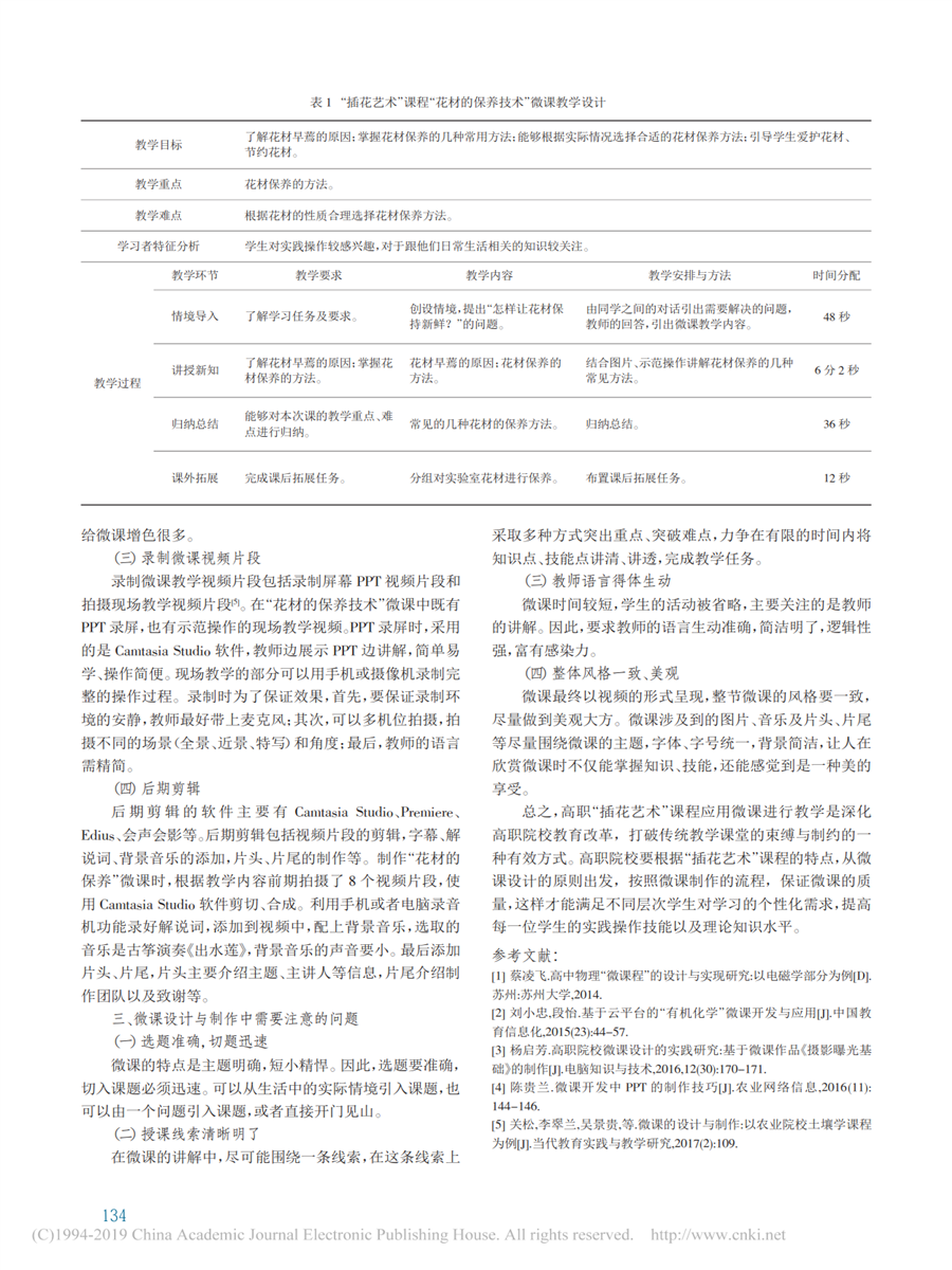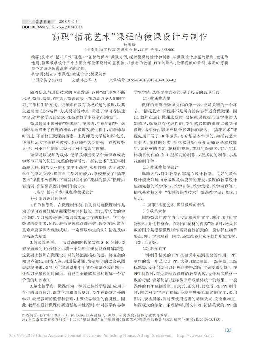工作室成员孙昕昕论文《高职”插花艺术“课程的微课设计与制作》