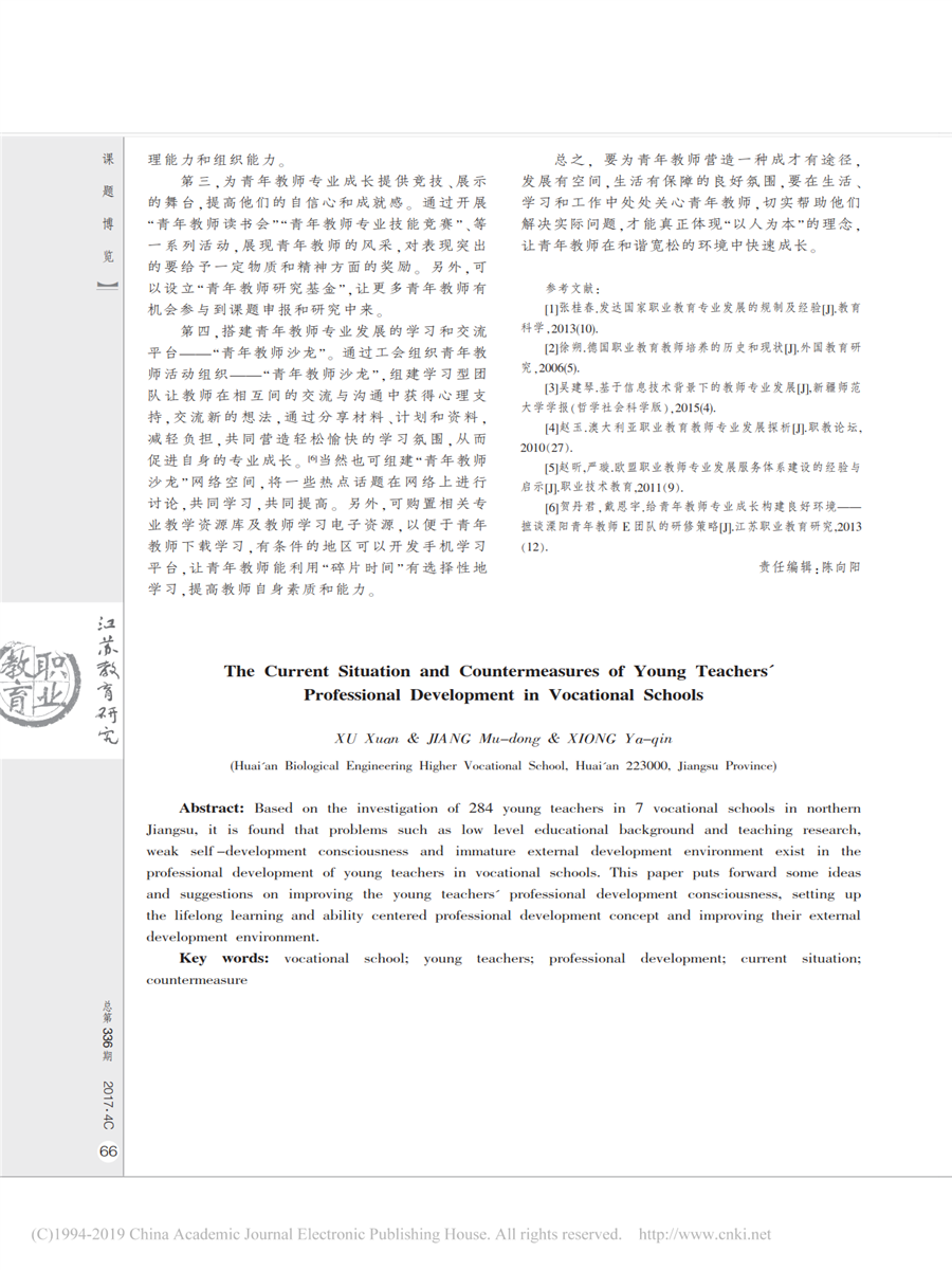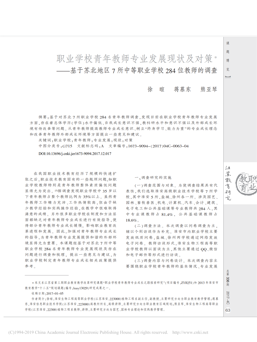 工作室成员徐暄与熊亚琴论文《职业学校青年教师专业发展现状及对策》