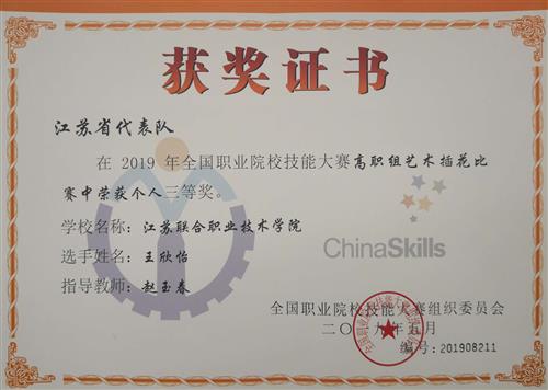 6月2日至4日,2019年全国职业院校技能大赛高职组“艺术插花”赛项在云南林业职业技术学院顺利举行。经过激烈角逐,我校王欣怡取得三等奖的好成绩。