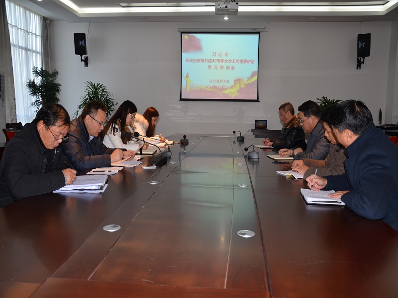 12月24日,办公室党支部组织学习习近平总书记在庆祝改革开放40周年大会上的重要讲话精神。会议由办公室党支部书记、主任刘江主持,办公室党支部党员参加此次活动。