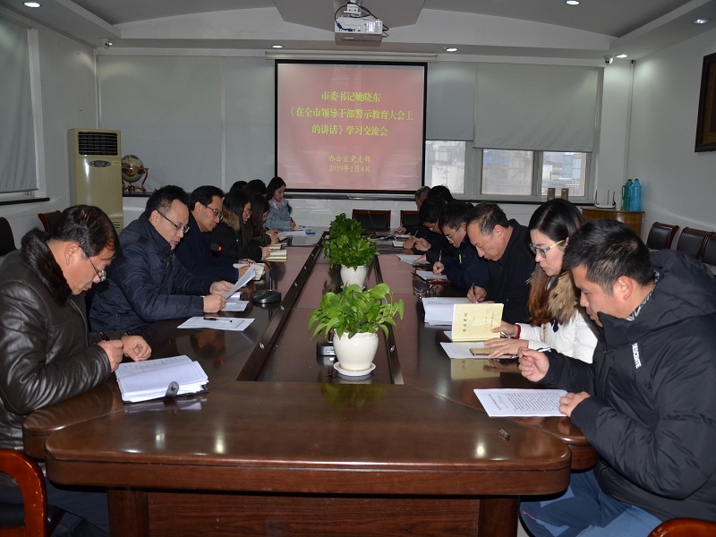 1月4日,办公室党支部组织学习姚晓东书记在全市领导干部警示教育大会上的讲话精神。会议由办公室党支部书记、主任刘江主持,办公室党支部全体党员参加此次活动。