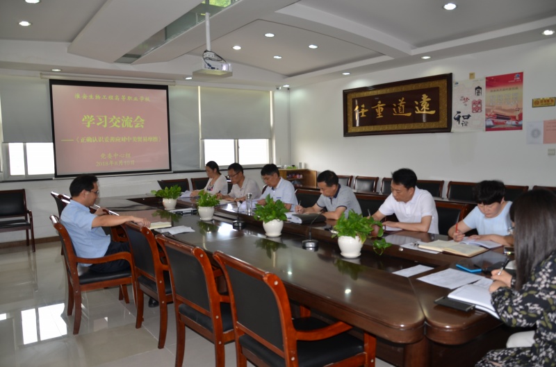 8月10日上午,校党委中心组组织学习《正确认识妥善应对中美经贸摩擦》并展开讨论。会议由校党委书记、校长董峰主持。