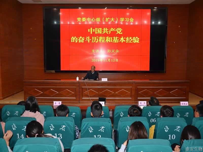 11月12日下午,我校党委中心组(扩大)在多功能报告厅召开“党史知识”学习会。会议邀请到淮安市委党校党史党建教研部主任孙义永副教授来校作专题讲座。校领导班子成员、全校党员、部分学生代表参加了学习会。
