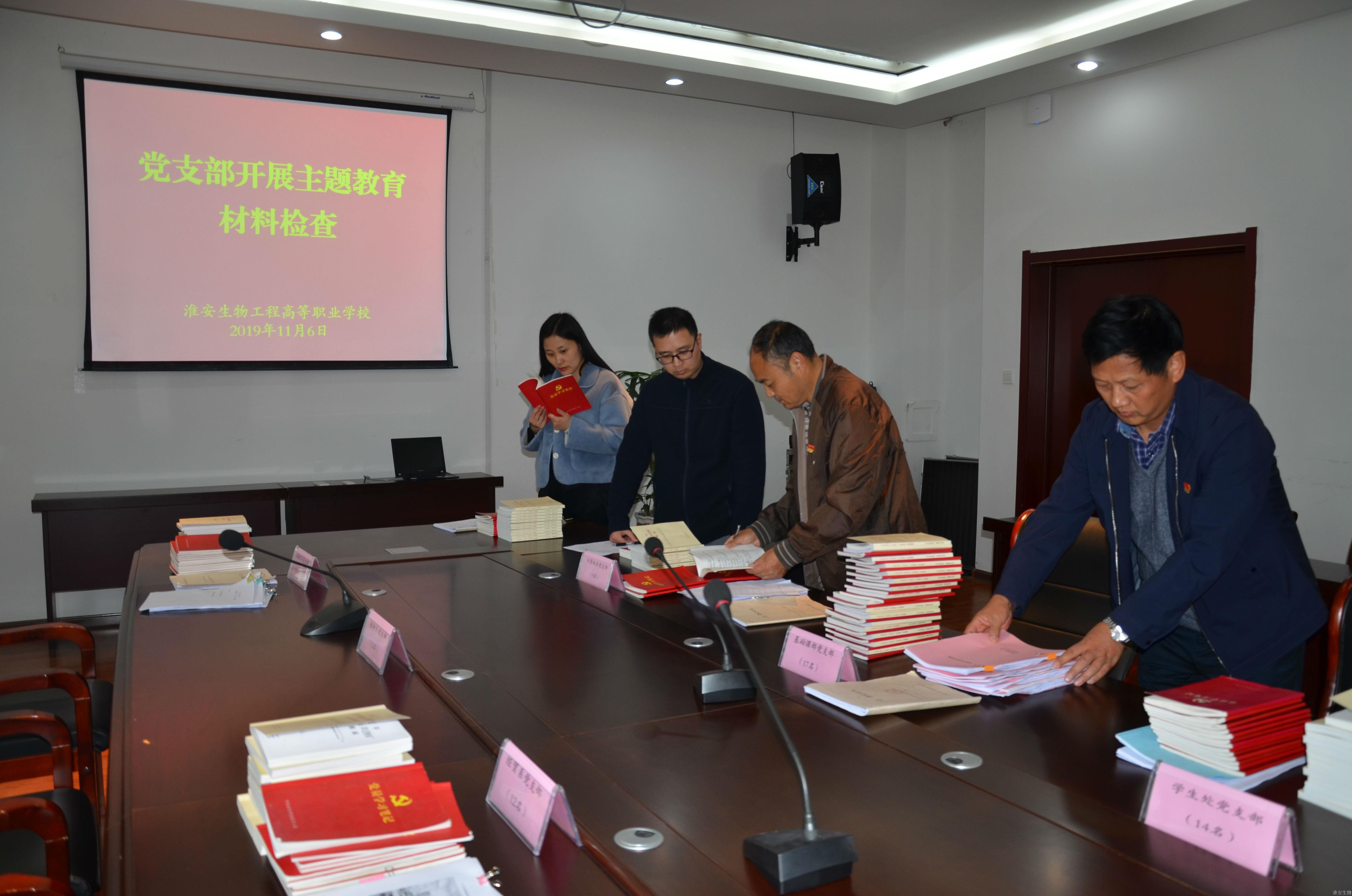 为进一步推进“不忘初心、牢记使命”主题教育落地落实、到边到底,2019年11月6日下午,淮安生物工程高等职业学校副书记石国安带领校主题教育办公室全体人员对各党支部近期开展主题教育情况进行检查,查阅了各党支部“三学”、“三问”、“四重四亮”、“双诺双评双励”及“三会一课”的开展情况,查看了各位党员的学习笔记和学习《习近平关于“不忘初心、牢记使命”论述摘编》情况,并形成通报材料,督促各党支部继续做好主题教育后半段工作。