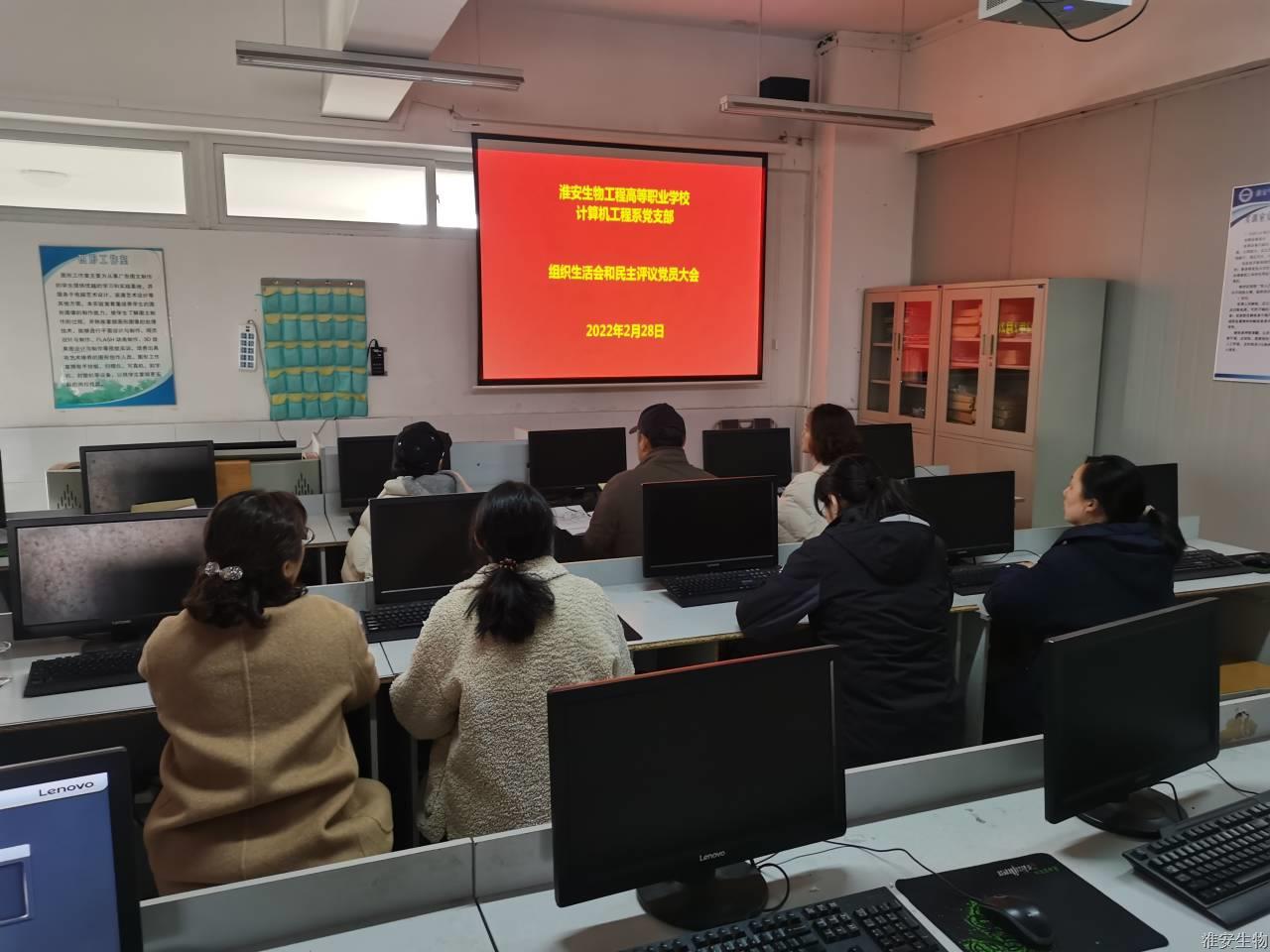 按照中共淮安市教育工委下发的淮委教〔2022〕2 号文件精神和校党委工作部署,计算机工程系党支部于2022年2月28日下午在微机实训楼502室召开2021年度党支部组织生活会和民主评议党员大会。会议由支部书记王振龙主持,校党委副书记石国安和支部全体党员参加了会议,石国安对组织生活会进行了全程指导。