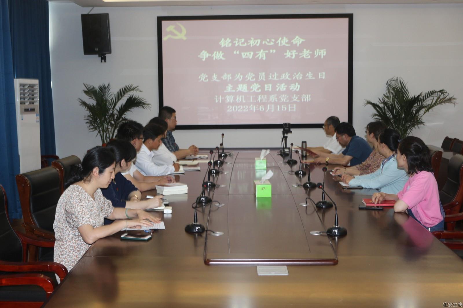 为贯彻落实校党委关于“爱心红网”党建工作部署,提醒党员不忘入党初心,时刻牢记党的宗旨和使命,强化党员意识,激发党员争先创优的积极性、主动性,6月15日下午,计算机工程系党支部在新实训楼119会议室召开支部党员大会,开展了“铭记初心使命 争做‘四有’好老师——为党员过政治生日”主题党日活动。校党委副书记石国安同志和支部全体党员及发展对象参加了活动。