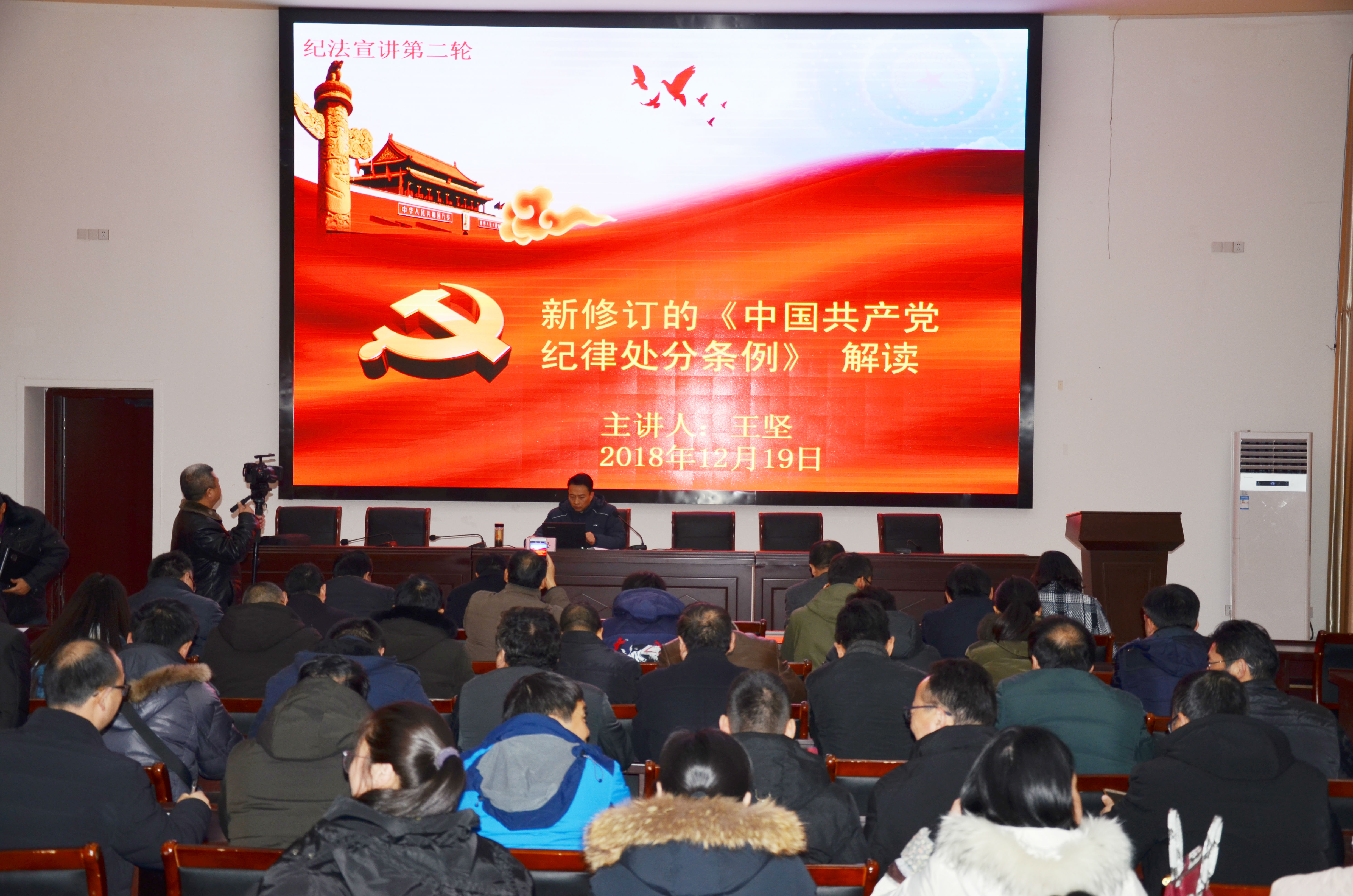 根据市纪委《关于开展纪法宣讲“千百万”行动的通知》要求和校党委工作安排,12月19日下午,校党委举办第二轮“纪法宣讲”活动。校纪委王坚书记围绕新修订的《中国共产党纪律处分条例》进行了解读 ,校全体中层以上干部、各支部负责人及全体支委参加了活动。