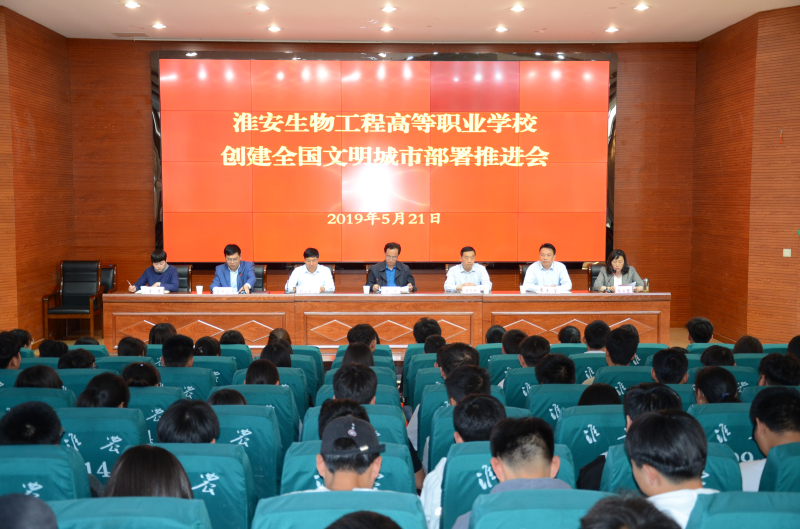 5月21日下午,我校召开创建全国文明城市工作部署推进会。全体校领导、中层干部,各党支部委员,各系部团总支书记,全体班主任及学生干部代表出席会议。