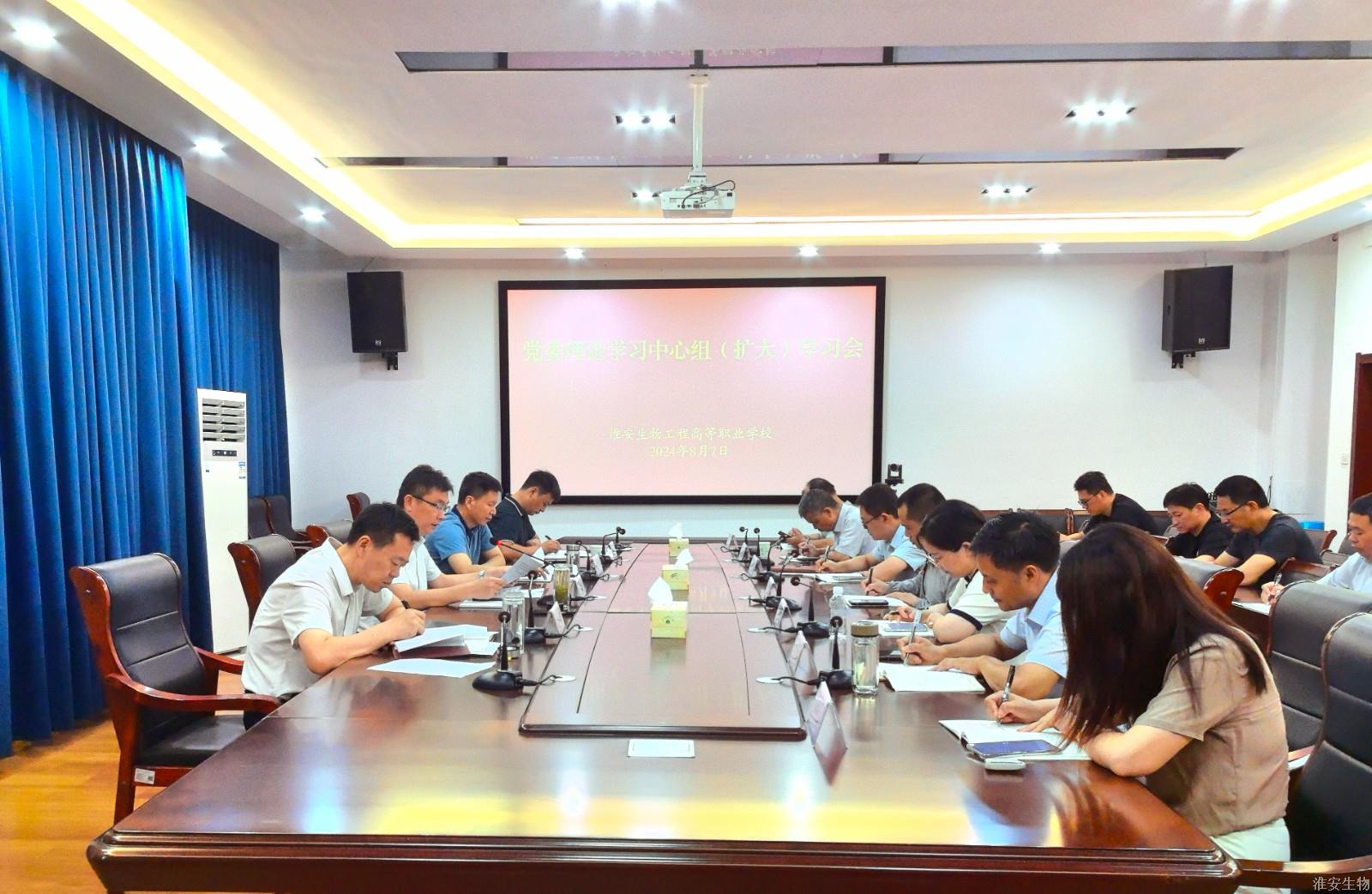 8月7日上午,淮安生物工程学校召开党委理论学习中心组(扩大)学习会。校党委书记、校长韩永胜主持会议并讲话,校党委领导班子成员出席会议,各党支部书记参加学习。