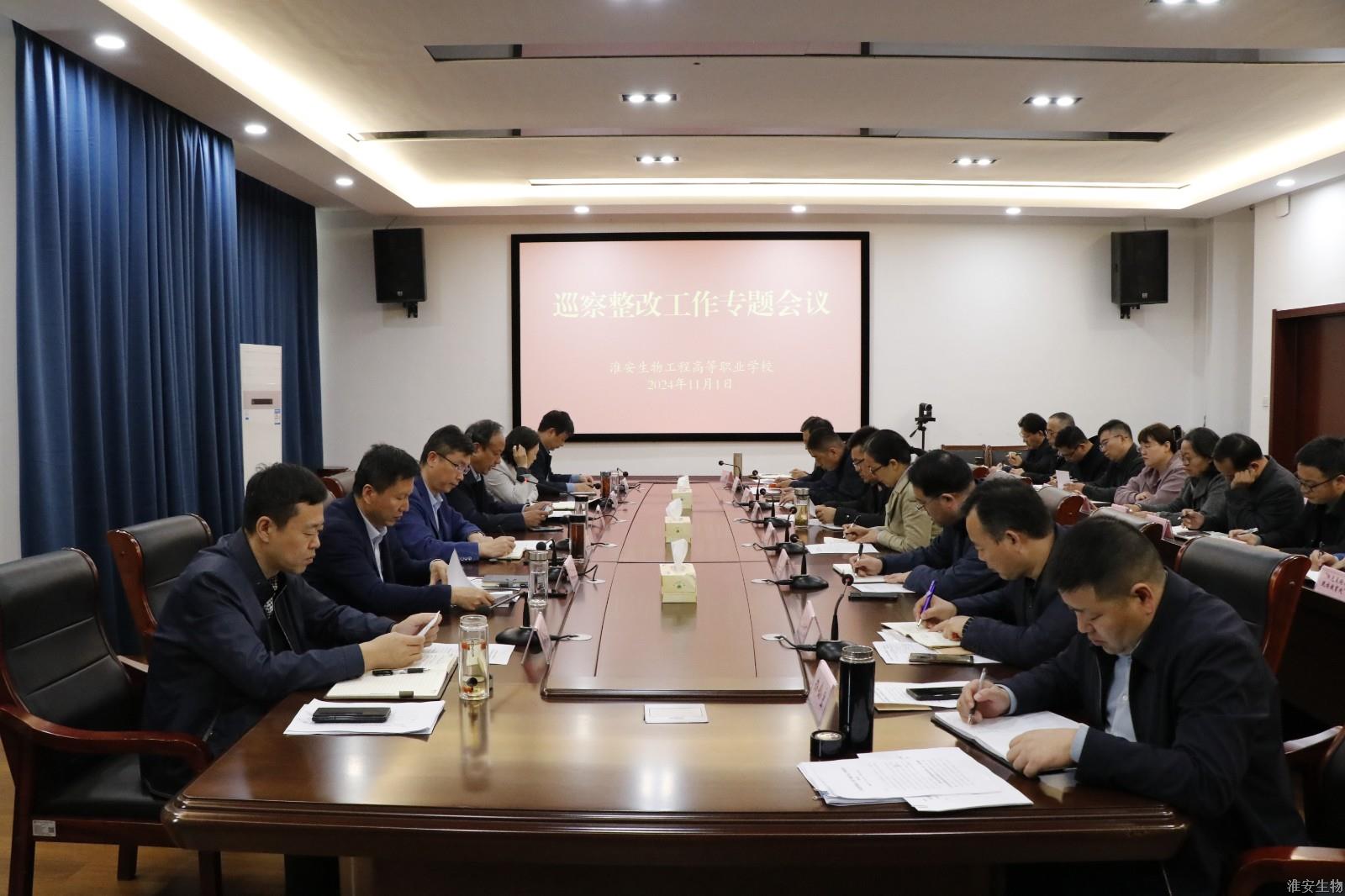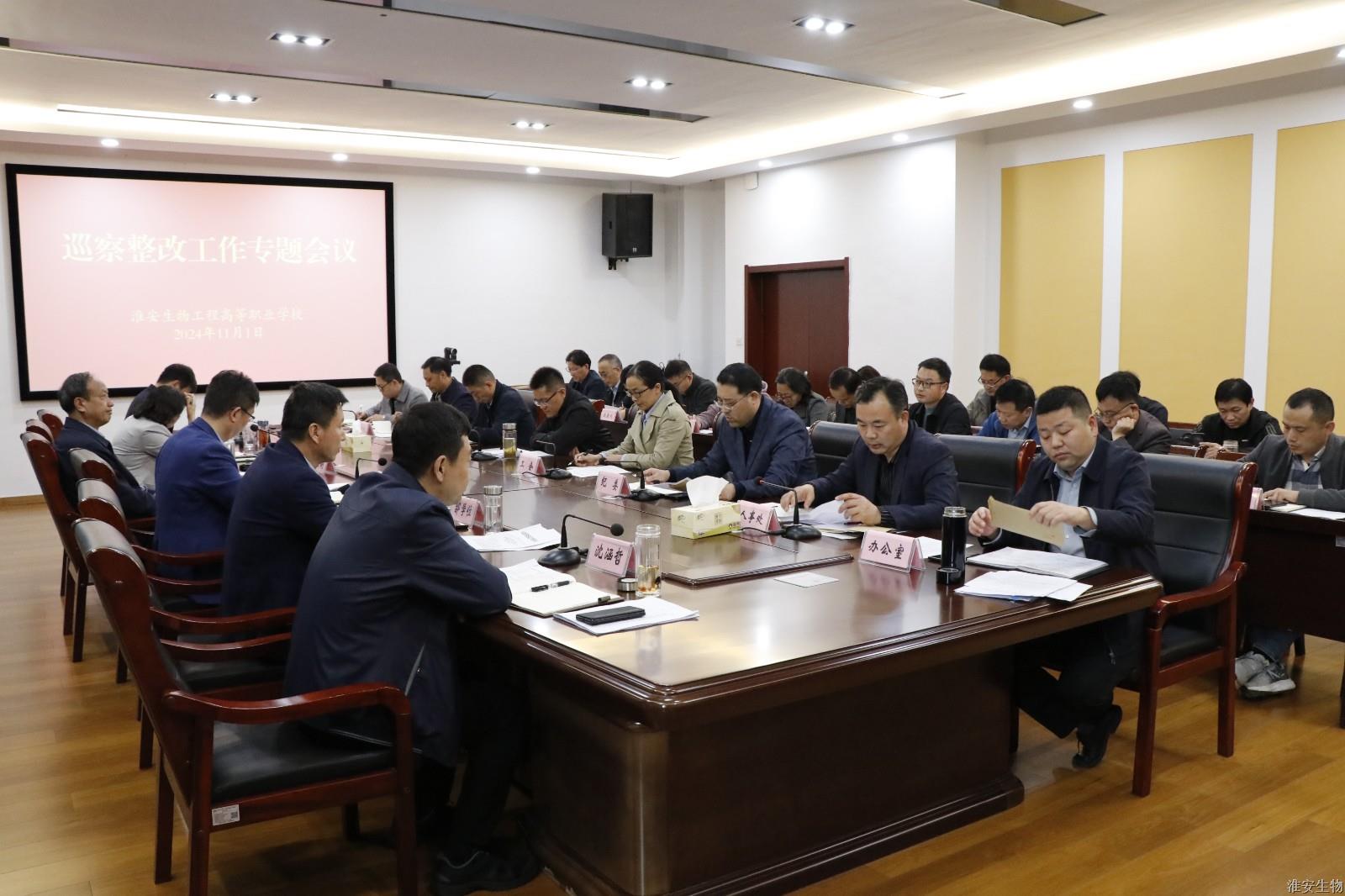 11月1日,淮安生物工程学校召开市委巡察反馈意见整改工作专题会议。党委书记韩永胜出席会议并讲话,党委副书记、校长施玉明主持会议,校领导班子成员,各处室、系部主要负责同志参加会议。