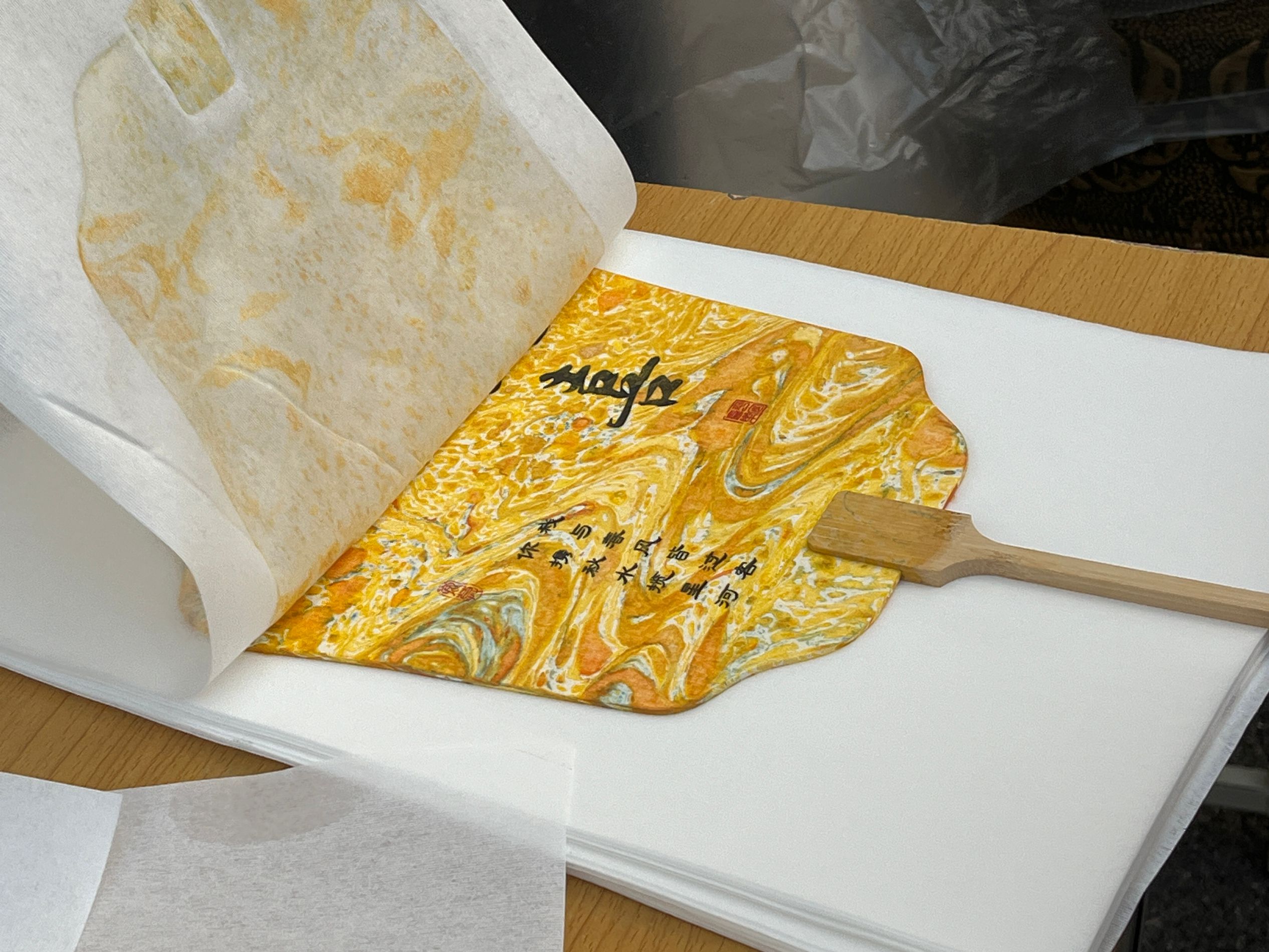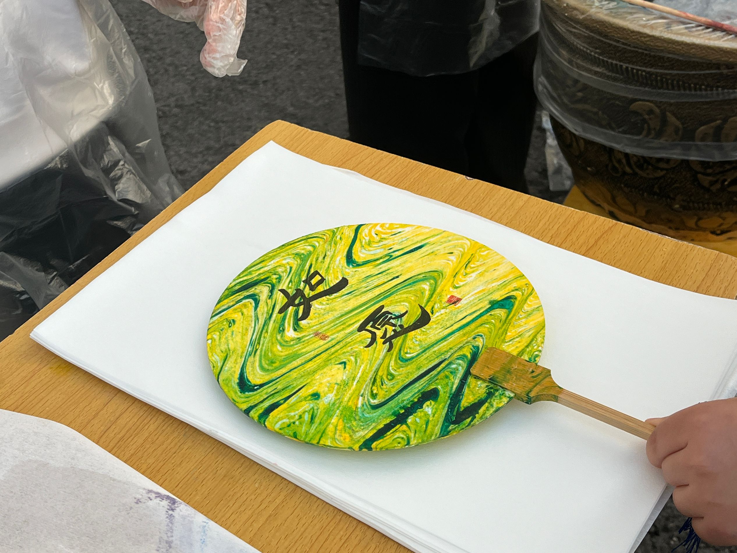 同学们根据自己的MBTI类型和喜好,挑选喜欢的色彩进行漆扇制作。在志愿者的帮助下,大家小心翼翼地调色、上漆,每一道工序都倾注了同学们的心血和创意。最终,一把把色彩斑斓、风格各异的漆扇在同学们的手中诞生。这些漆扇不仅是同学们的劳动成果,更成为了他们性格特征的象征。