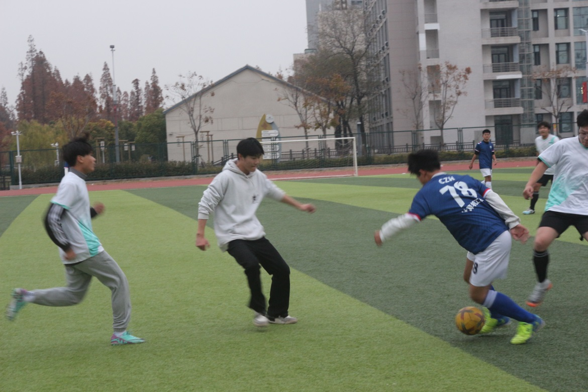 计算机工程系团学会副主席陈昊文邀请汽车机电系足球队的王辰禹担任裁判、邀请校啦啦操社团前来助力加油。