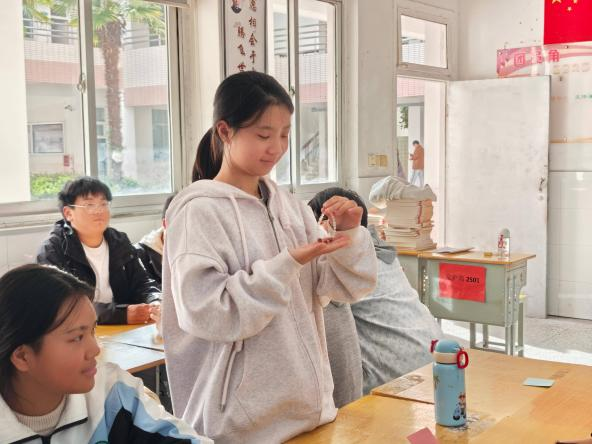 活动从“物品故事”开启暖意。同学们带着人像抱枕、怀旧魔方、出游手链等“心情物品”分享温暖故事:蒋圣缘借抱枕忆同学生日祝福,胡玉嘉以魔方念初中时光,周颜凭手链思出游美好。暖心分享后,班长顺势引导:“若有未说的烦恼,今天让我们共敞‘心情小盒子’。” 自然切入活动主题。