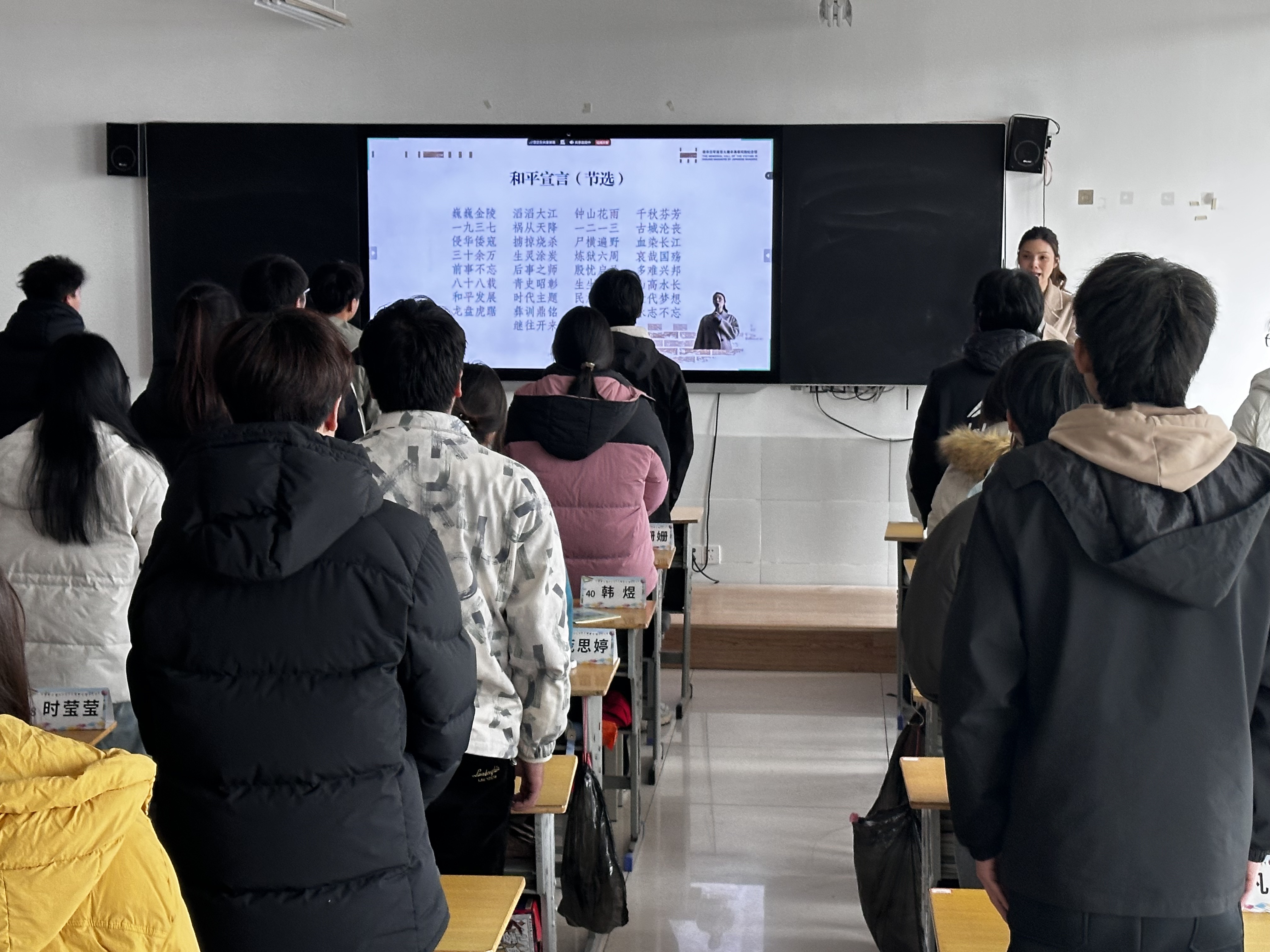 讲座尾声,许老师带领全体师生庄严宣读和平宣言,字字铿锵传递对先烈的缅怀与对和平的珍视。活动最后,学校向全体学生发出倡议,12月13日国家公祭日当天,以默哀、研读史料等形式悼念遇难同胞,将“吾辈自强”的信念融入日常学习与生活,用青春之力守护祖国安宁与繁荣。