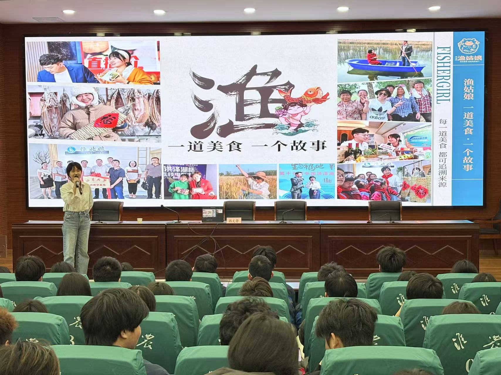 讲座中,韩文静总经理围绕企业概况、核心产品体系、全产业链运营模式、预制菜产业发展趋势及就业创业机遇等方面进行了深入分享。她重点介绍了洪泽湖螺蛳、特色鱼圆、手工特色酱料、洪泽麻辣鹅等拳头产品,详细讲解了食品安全溯源、产品标准化、品牌市场化等创新实践,结合自身创业经历,生动讲述了传承美食文化、助力乡村振兴的奋斗故事,鼓励同学们关注家乡、扎根家乡,在地方特色产业发展中找准定位、实现人生价值。