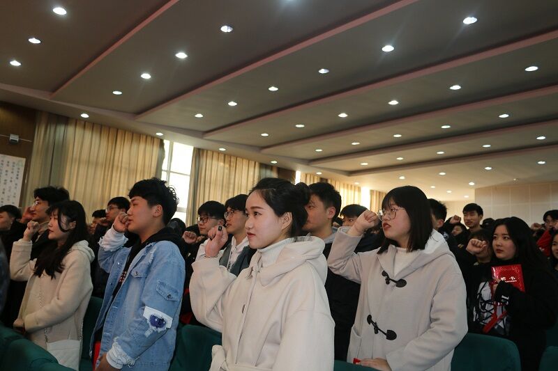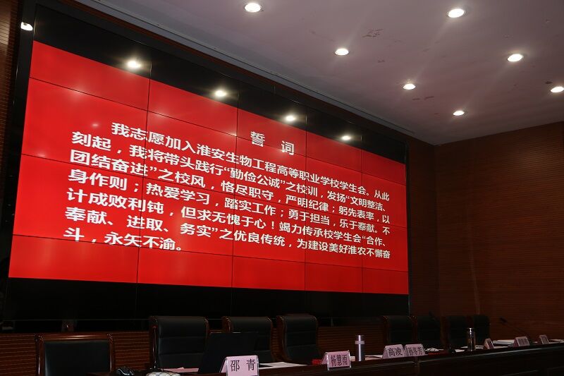 我志愿加入淮安生物工程高等职业学校学生会,以此刻起,我将带头践行“勤俭公诚”之校训,发扬“文明整洁团结奋进”之校风,恪尽职守,严明纪律;躬先表率,以身作则;热爱学习,踏实工作;勇于担当,乐于奉献。不计成败利钝,但求无愧于心!竭力传承校学生会“合作、奉献、进取、务实”之优良传统,”为建设美好准农不懈奋斗,永矢不渝……在王洪响老师慷慨激昂的领誓下,我们共同见证了全体学生同学们的信心和斗志。