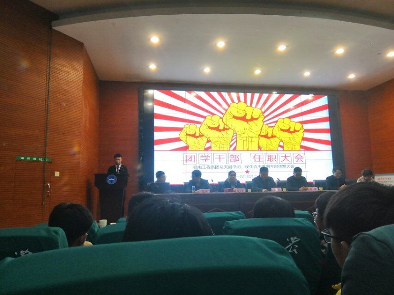 3月28日晚上,机电工程系2019届团委、学生会学生干部任职大会在综合报告厅举行。机电系主任蔡小全、副主任陈友明、张钦、学生处副处长胡春林、机电系全体班主任及全系学生参加了会议。