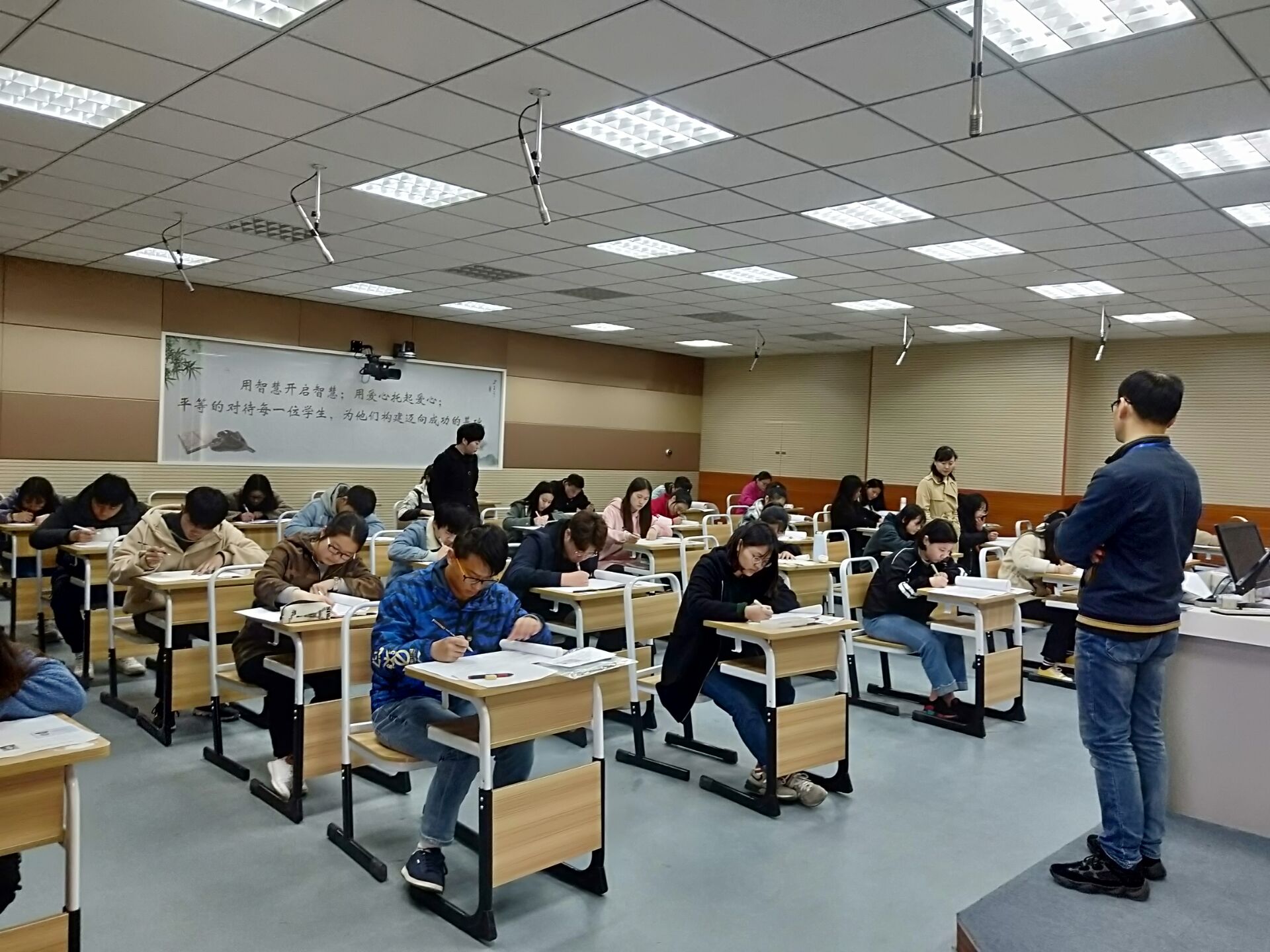 4月9日上午,淮阴工学院2019年转段升学“3+4”项目果蔬花卉专业综合考试在我校实训楼605录播教室举行。副校长李慧亲临考场督考。监考工作由淮阴工学院两名教师负责。整场考试考风端正、纪律严明,考生精神饱满、答题认真。