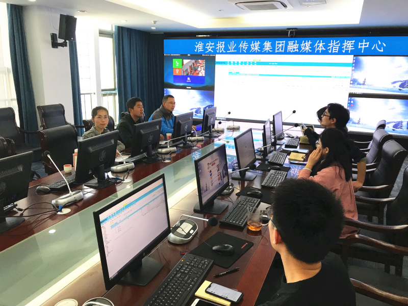 淮安日报社全媒体经营中心教育部副主任金海洋热情接待了三位编辑。卢化福、何渊、陈春凯、张晨佳、王莹莹五位记者就微信公众号议题设置、后台制作、135编辑器与图文编辑器使用、常用编辑技巧、公众号主界面小程序拓展等内容,边操作边讲解,对三位编辑进行了培训。