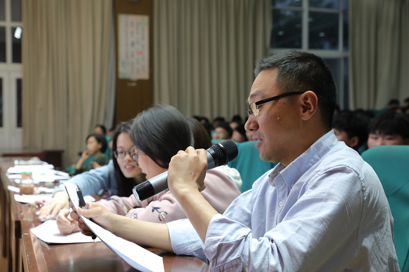 学生主持人简要介绍了我校创建“周恩来班”活动的宗旨和开展历程,对本届“周恩来班”的创建情况、申报情况以及评审要求予以说明。校团委副书记陈逸林希望所有参展班级代表要深刻领会并紧紧围绕“周恩来精神”,充分展示、认真答辩,相互学习、共同提高,真正做到以伟人风范为引领,以实际行动诠释、践行伟人精神。