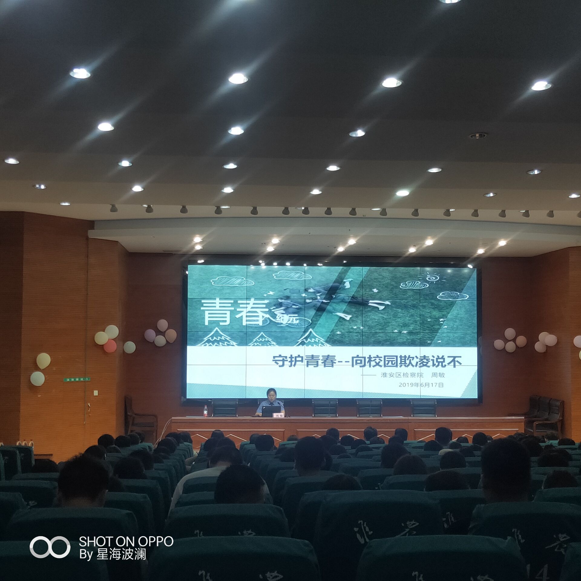 近年来,校园欺凌事件频繁发生,对学生进行普法教育势在必行。6月17日晚,植物工程系邀请淮安区人民检察院未成年人检察科检查官助理周敏到我校进行主题为“反对校园欺凌,宣传法治教育”的讲座。植物工程系17和18级全体学生和班主任以及学生会成员参加讲座。