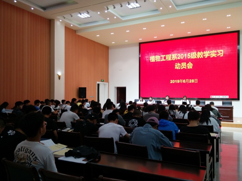 6月28日,植物工程系在实训楼124室召开了2015级教学实习动员大会,落实2015级学生的教学实习工作。2015级全体学生和教学实习指导老师参加了此次大会。