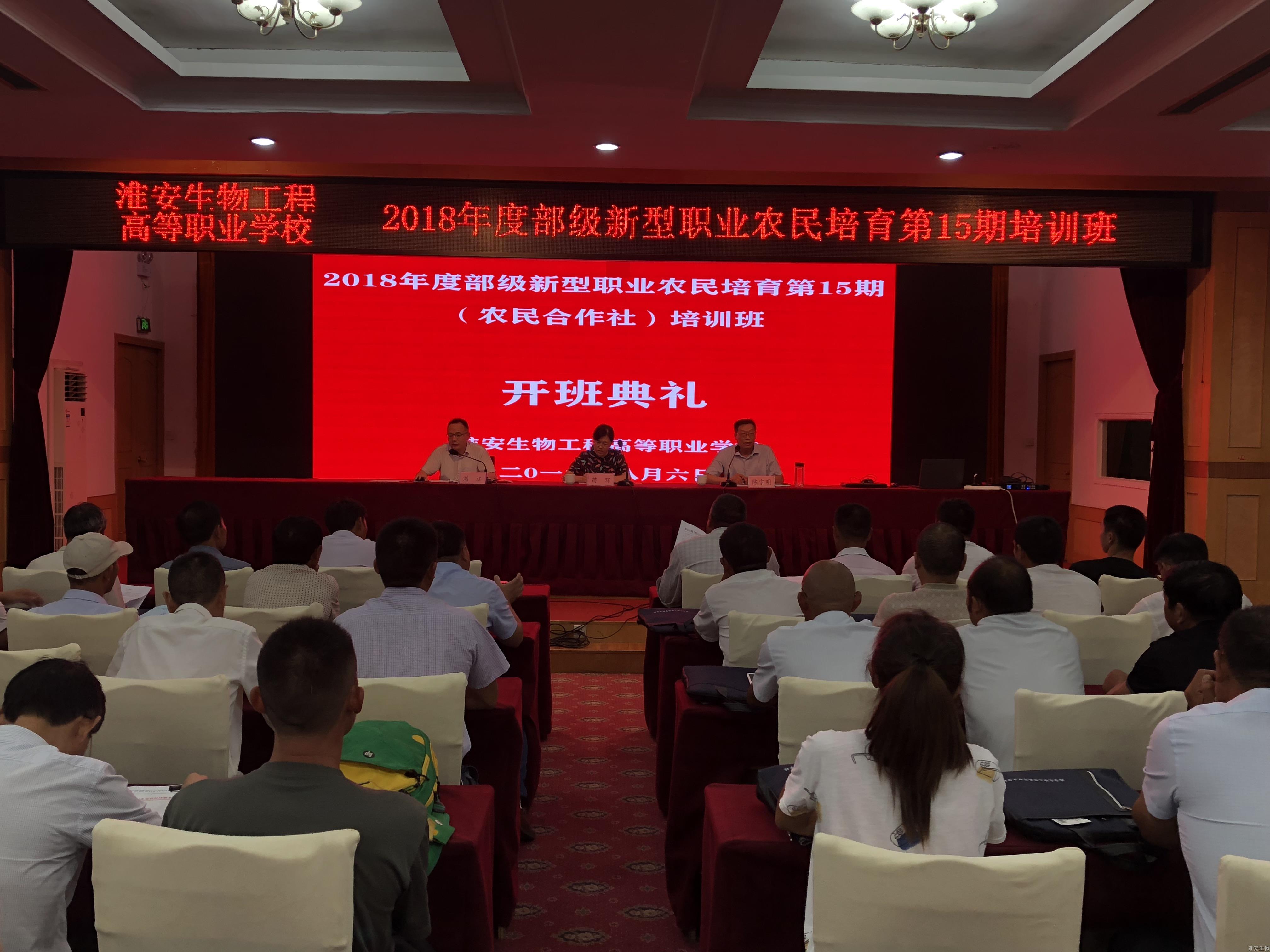 由淮安生物工程高等职业学校举办的“2018年部级新型职业农民培育第15期培训班”开班仪式,在淮安市楚州宾馆举行。