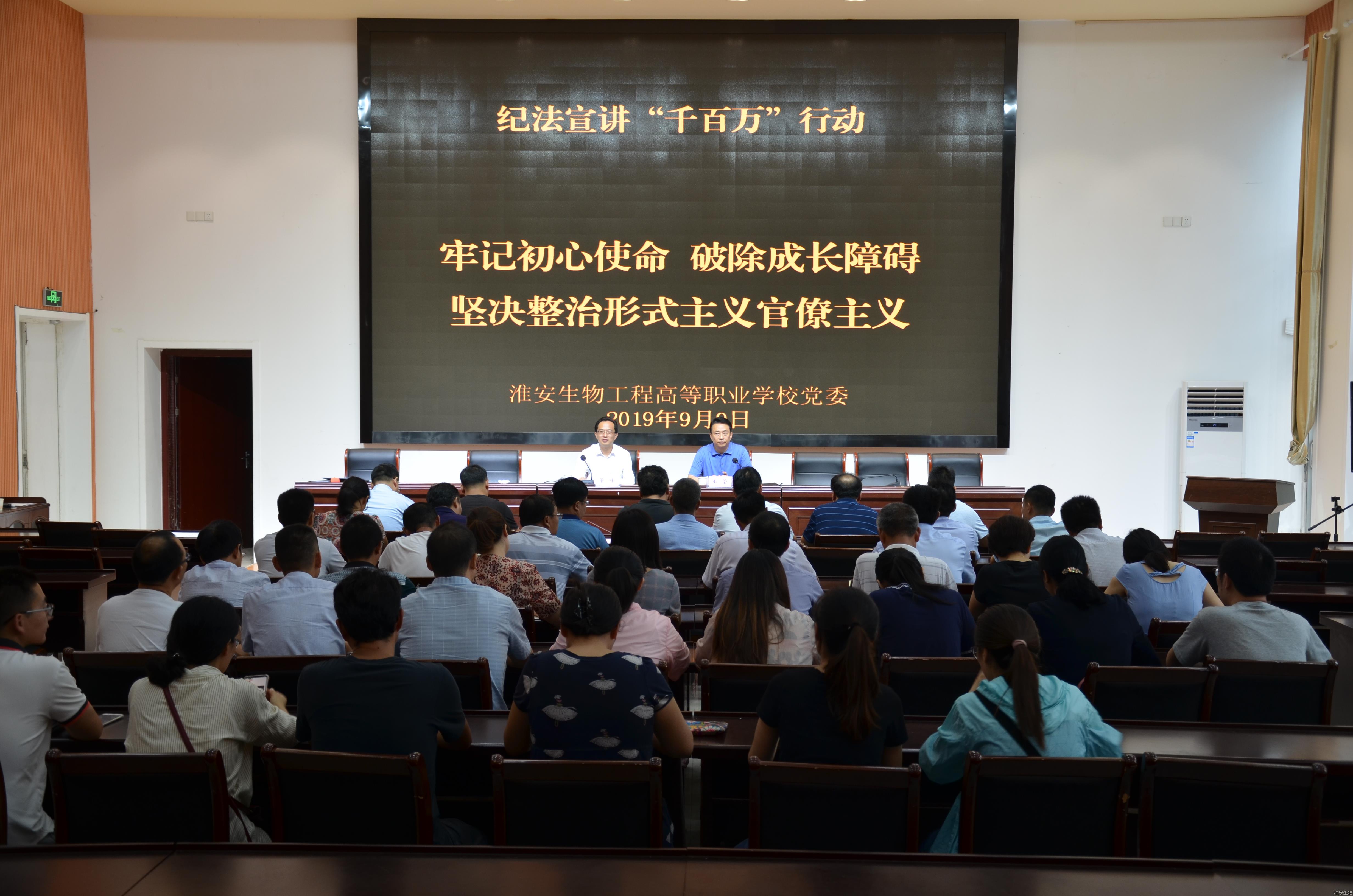 9月9日下午,我校党委开展了以“牢记初心使命 破除成长障碍 坚决整治形式主义官僚主义”为主题的纪法宣讲报告会。校党委书记、校长董峰作主题宣讲。我校全体中层干部及各党支部所有支委参加了报告会。报告会由校纪委书记王坚主持。