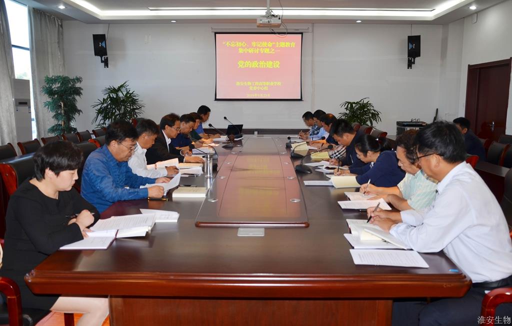 9月23日上午,我校党委中心组(扩大)在新农业实训楼119会议室召开了“不忘初心、牢记使命”主题教育集中研讨会。会议专题研讨了“党的政治建设”。校领导班子成员、各党支部书记参加了研讨会。