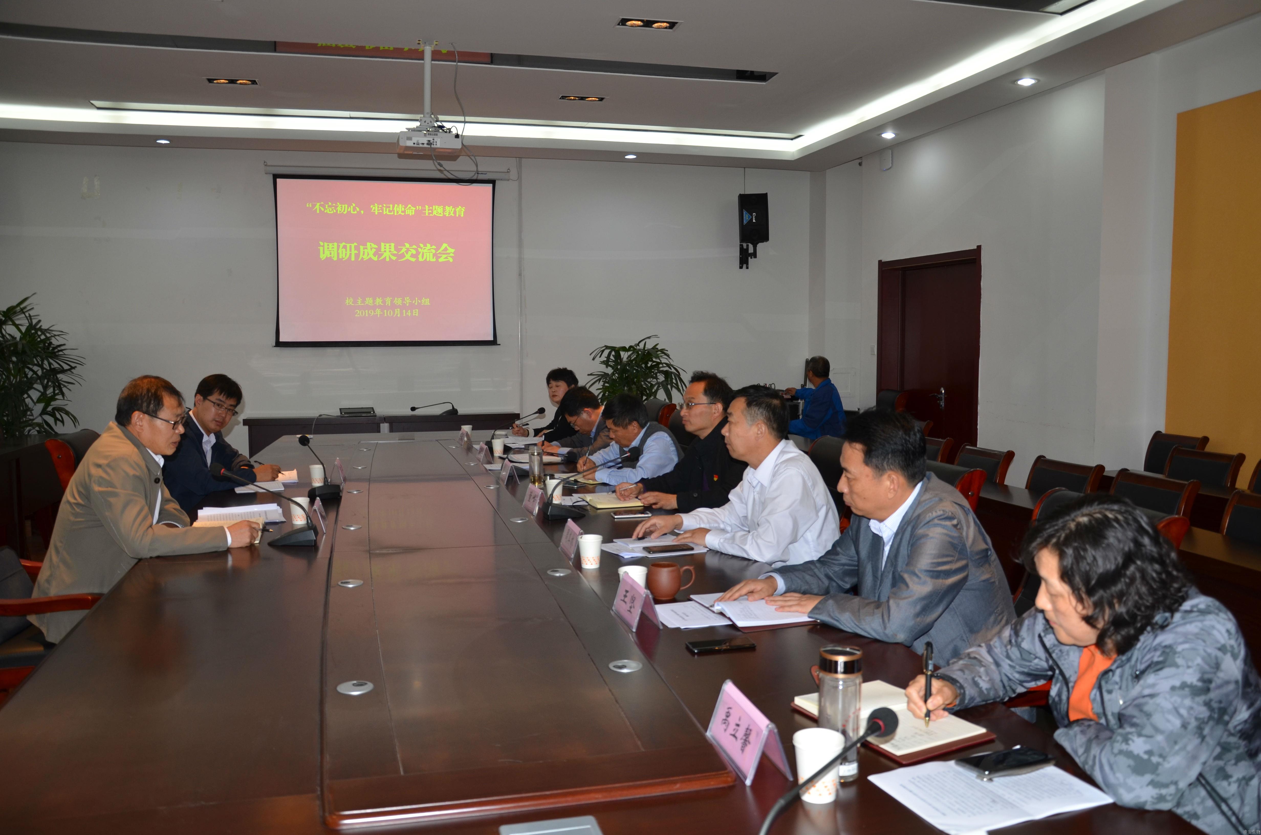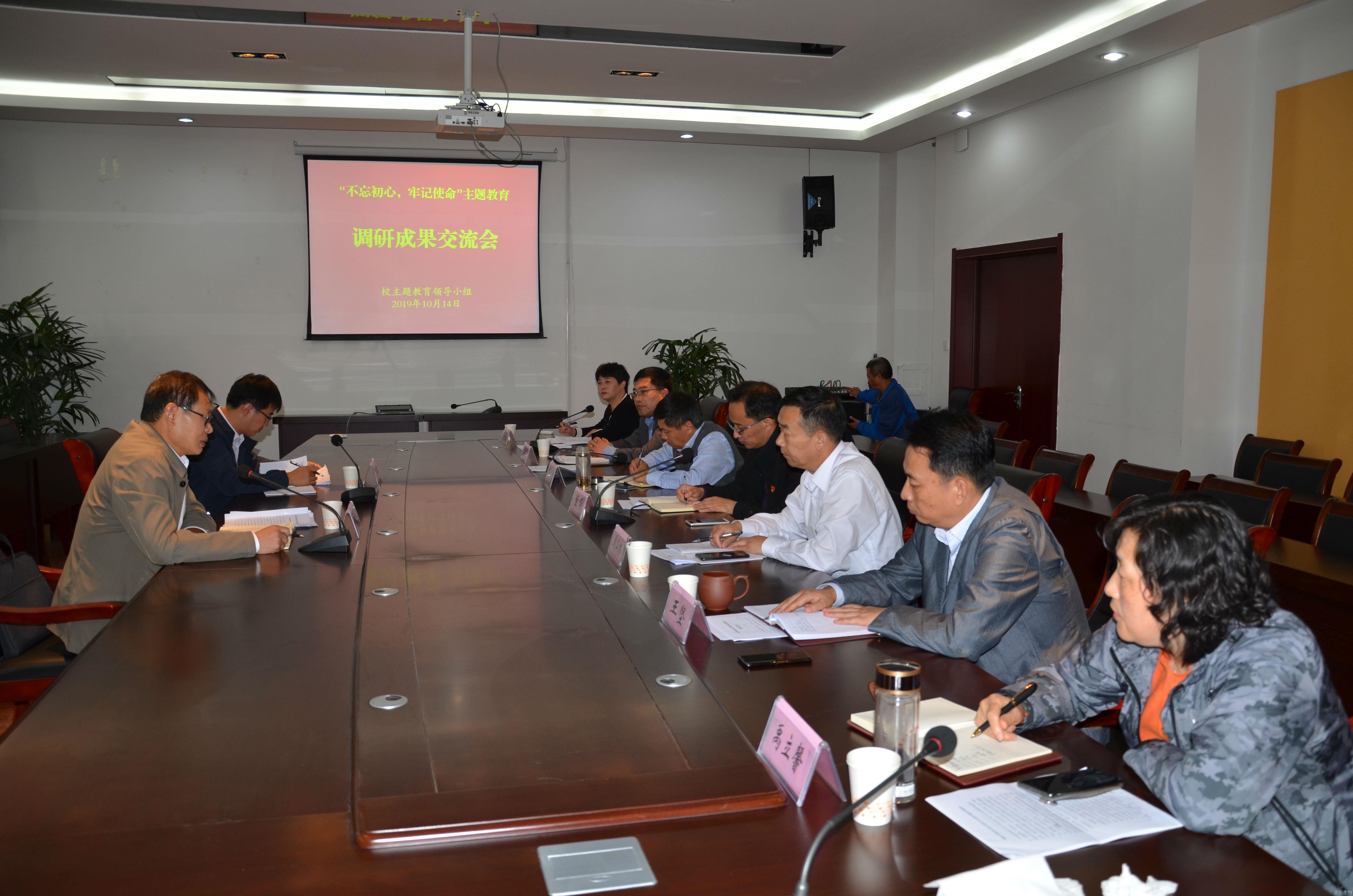 10月14日下午,我校党委中心组在119会议室召开主题教育调研成果交流会。校党委书记、校长董峰主持会议,党委中心组成员参加会议,市委主题教育第12指导组董聿武、袁康到会指导。