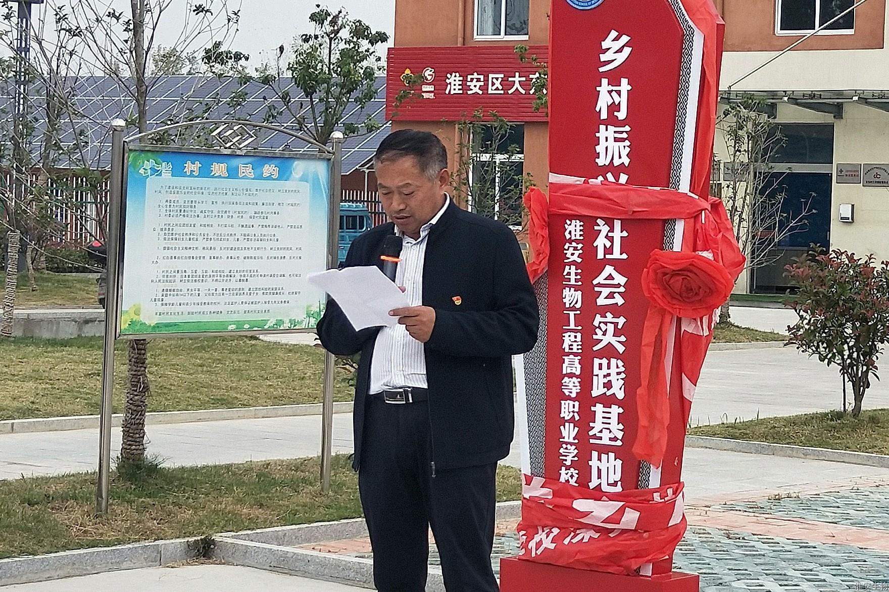 大东村党总支书记彭寿芬向参加活动的师生介绍了乡村振兴战略的实施、移风易俗、社会治理等各方面的工作,同时回顾了我校领导、师生为大东村实现脱贫所开展的一系列帮扶工作。他表示,在淮安生物工程学校的帮扶以及社会各界的关心和支持下,大东村近几年发展变化巨大,取得了可喜的成绩。2019年底,大东村将实现全面脱贫。村集体经济收入预计达到22.9万元。淮安生物工程学校乡村振兴社会实践基地的挂牌成立,将成为校村之间友谊持续的桥梁和纽带,更是助推大东村实施乡村振兴战略的坚强后盾。