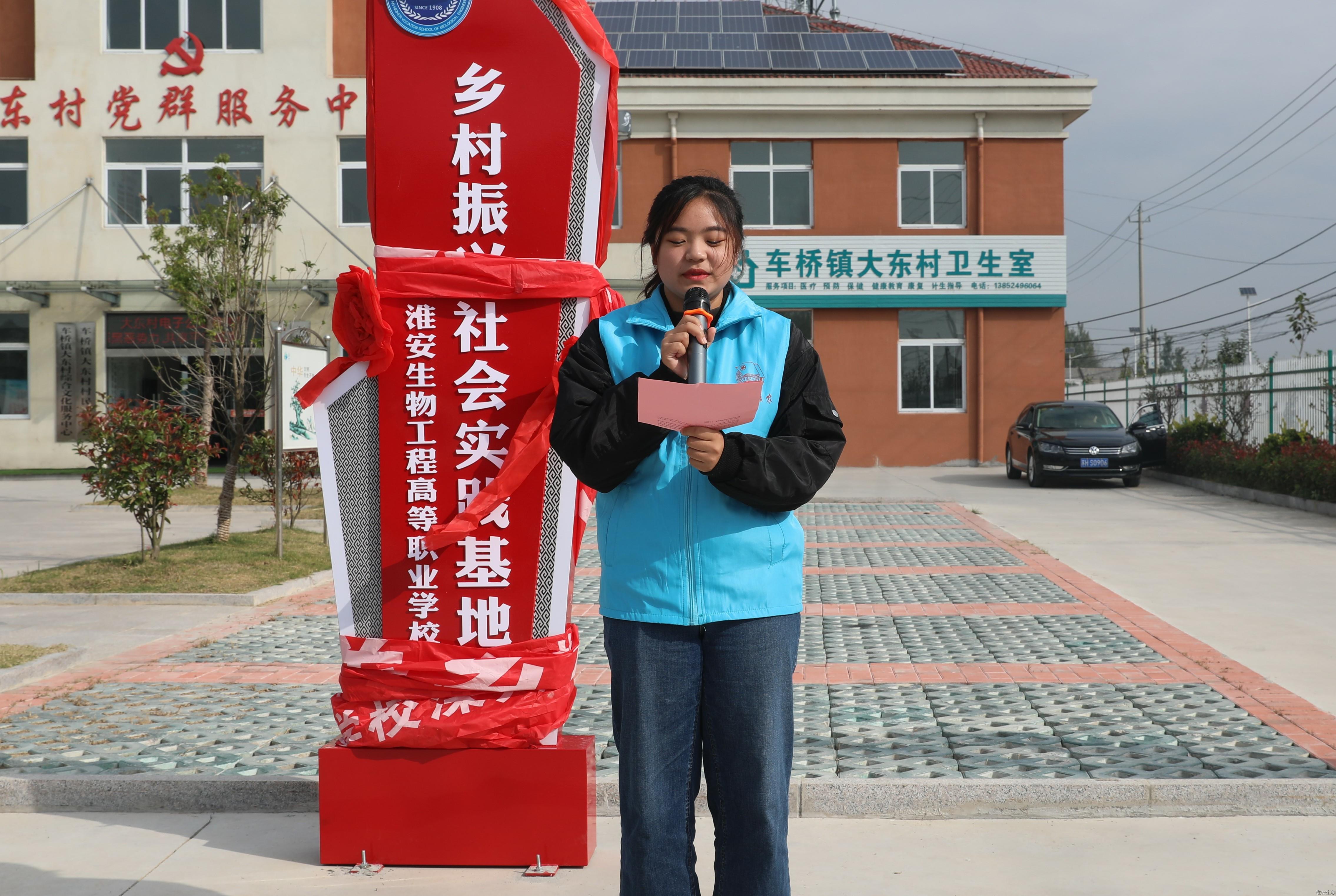 金秋飒爽、丹桂飘香的十月,迎来第六个国家扶贫日。10月17日上午,在这样一个特殊的日子,我校乡村振兴社会实践基地揭牌仪式在淮安区车桥镇大东村村民广场隆重举行。副校长禹立馨、大东村党总支书记彭寿芬、校团委副书记陈逸林、市帮扶队员朱美荣、三十多名学生代表及部分村民代表参加仪式。仪式由陈逸林主持。