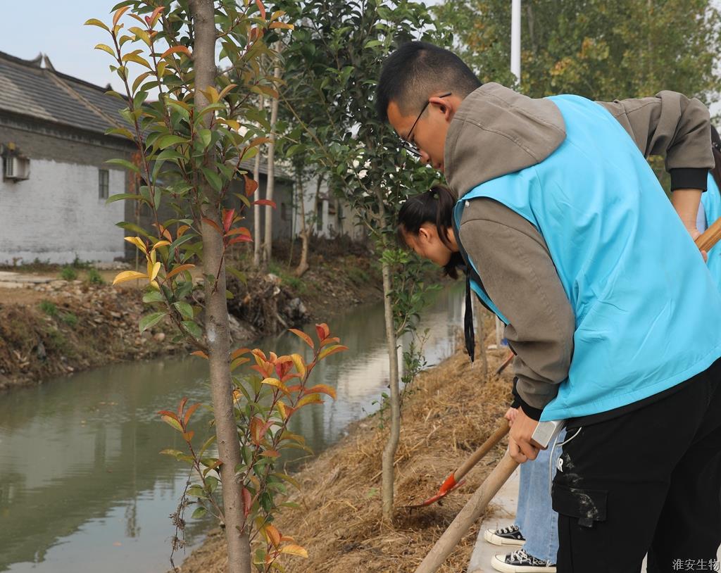 活动中,学生志愿者向村民进行了乡村振兴战略知识宣讲,并为今年春天栽下的树苗进行除草、松土和浇水养护。