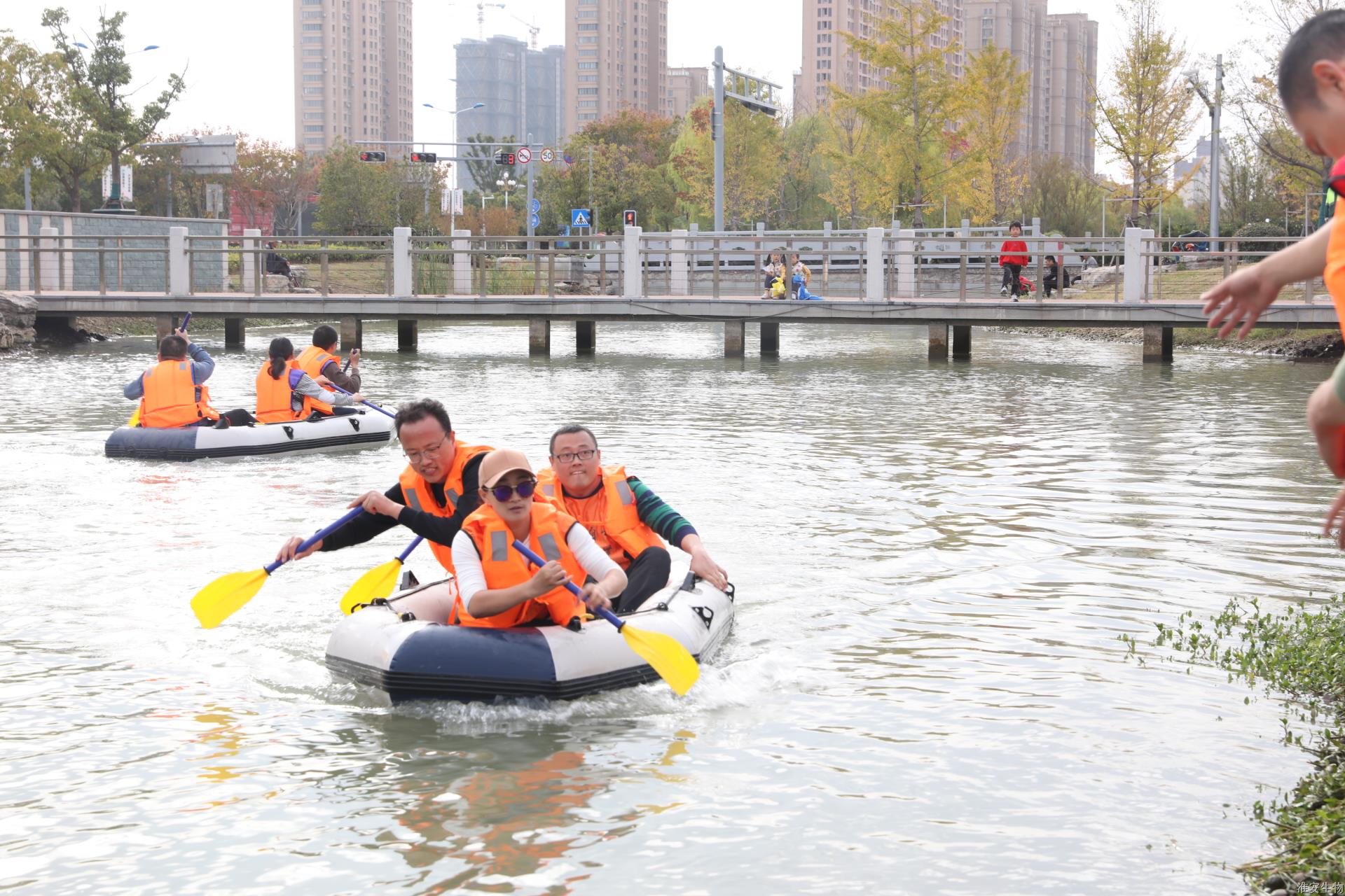 中午稍作休整后,拓展活动进入了热身环节。在各自队长的“魔性”舞姿带领下,两队队员面对面尬起了网红“洗衣舞”。在轻松愉悦的氛围中,开启了下午的第一项水中活动——皮划艇。在穿戴好救身衣后,大家摩拳擦掌、跃跃欲试。刚上皮划艇时,有部分队员不能很好的把控方向,原地转圈,但经过队友们的指导和互相鼓励、交流技巧后,很快地大家都能默契配合,高效完成夺旗任务。