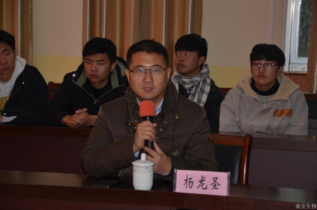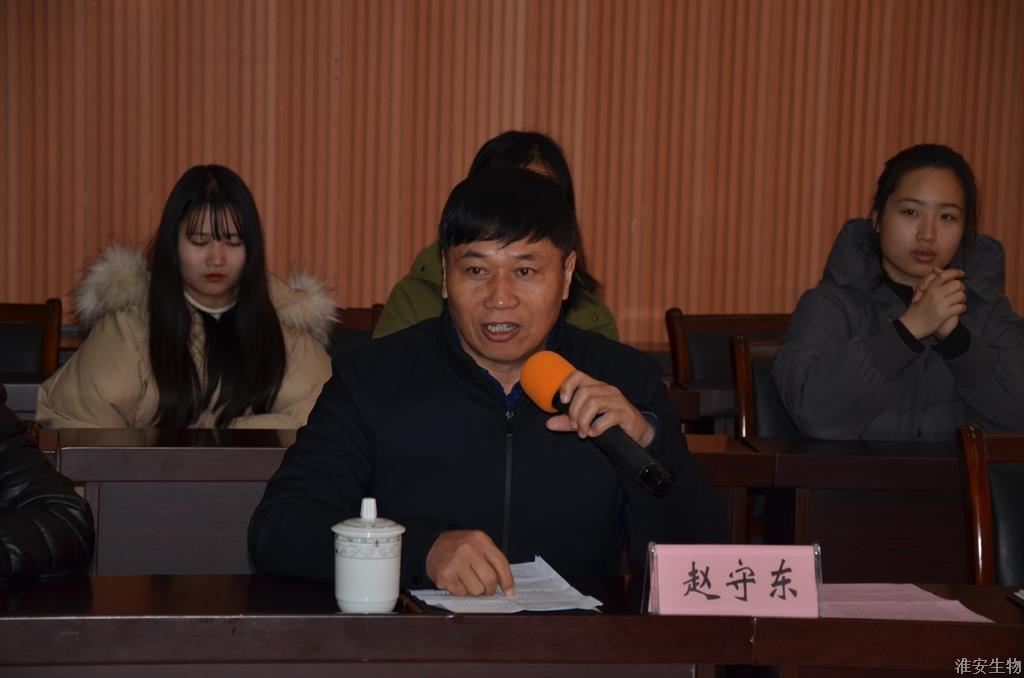 签约仪式于上午10点10分准时开始。赵守东首先致辞。他欢迎德康集团一行的到来,并介绍了学校的发展历史、师资力量、实训条件以及办学特色,着重介绍了动物工程系的概况和校企合作的思路。随后,杨龙圣讲话。他介绍了德康集团的基本情况以及双方共建“淮农▪德康兽医检测博士后实验室”项目的规划和前景。双方均表示要以签订协议为契机,推动项目建设和产学研深度融合,培养出更多有特色、有专长的高素质技能型人才。