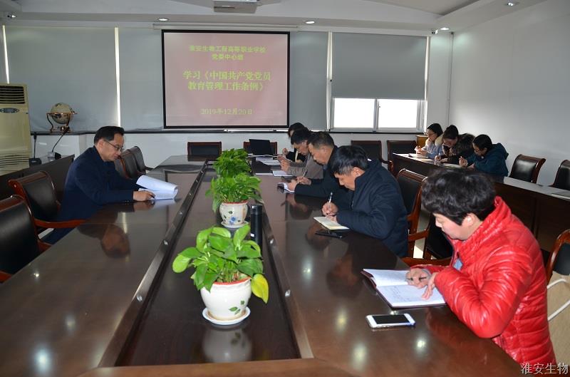 12月20日下午,我校党委中心组(扩大)在行政楼三楼会议室召开专题学习会,深入学习《中国共产党党员教育管理工作条例》。校领导班子成员,后勤党支部、植物工程系党支部党员代表参加了会议。